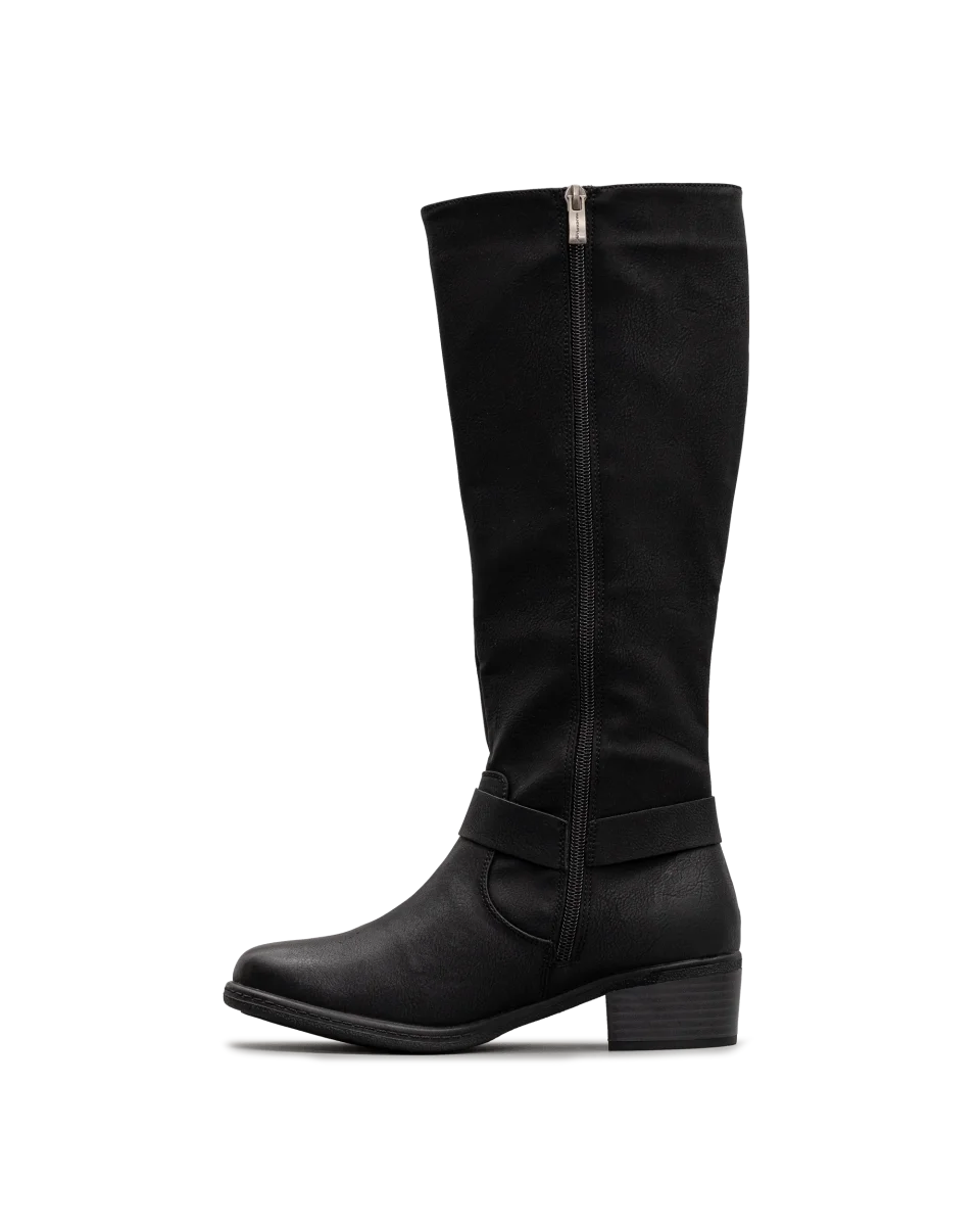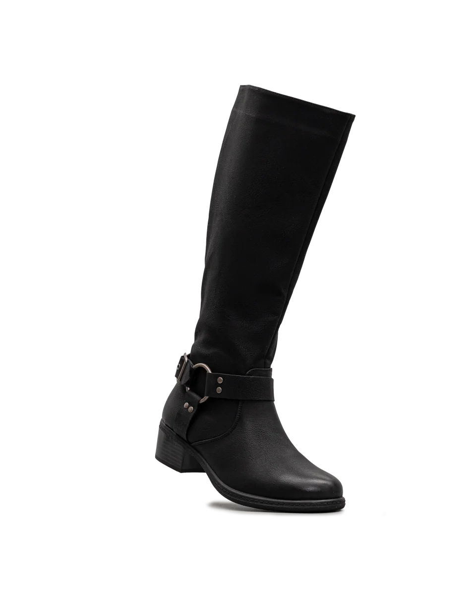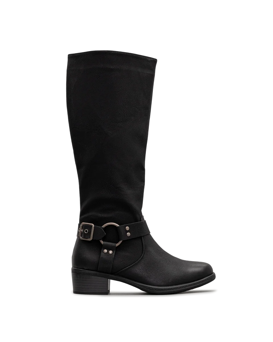 Ces bottes hautes noires pour femme incarnent l’élégance intemporelle avec une touche de modernité grâce à leur boucle décorative. Leur silhouette élancée et leur talon bas assurent confort et style, tandis que la matière résistante vous accompagne dans toutes vos aventures hivernales. Faciles à assortir avec vos tenues, elles ajoutent une touche sophistiquée à chaque look. Parfaites pour celles qui recherchent une botte à la fois pratique et chic.