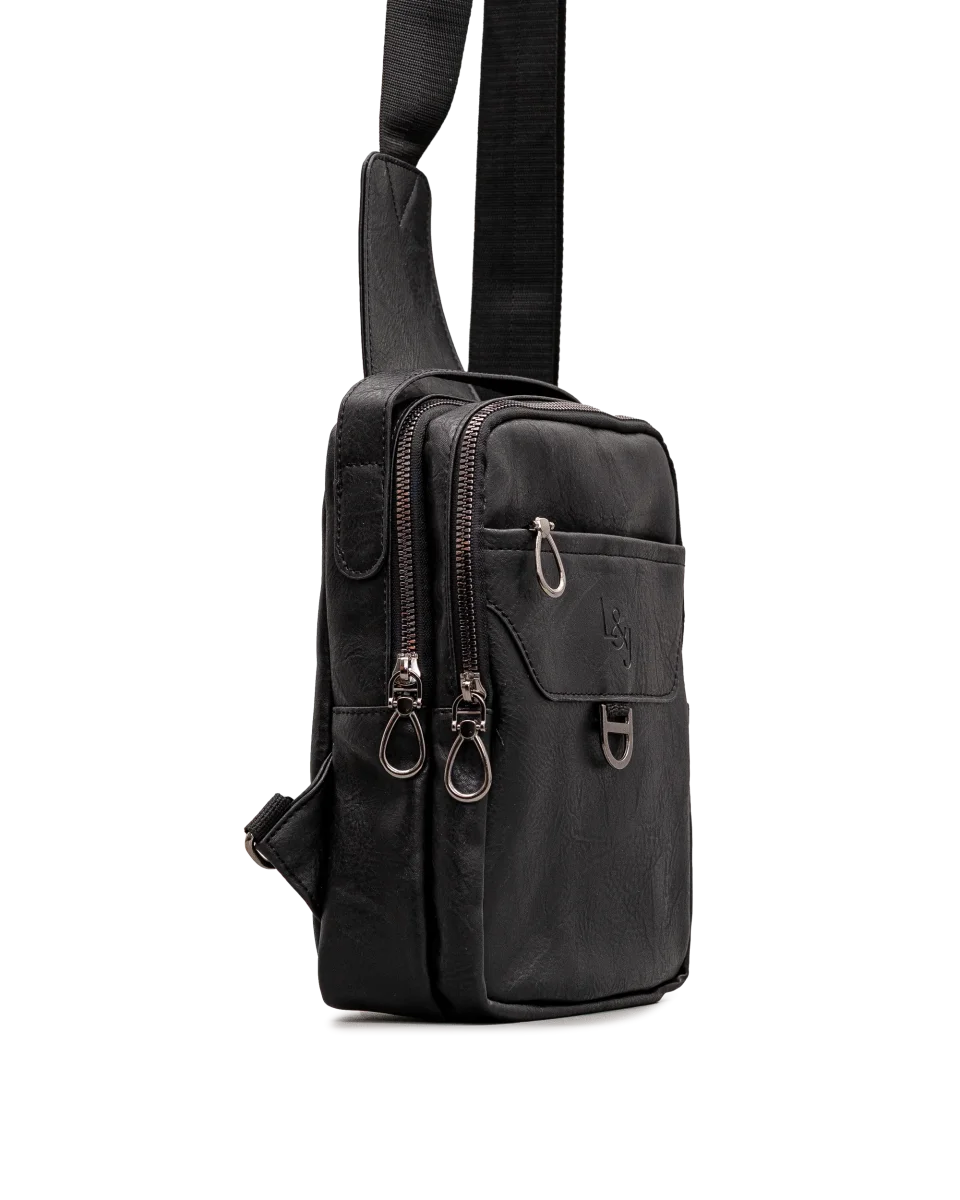 Ce sac bandoulière noir combine un design élégant et une texture effet cuir qui lui donne du caractère. Ses poches à rabat et ses finitions métalliques ajoutent une touche soignée. Sa taille compacte permet un transport pratique des essentiels. Luke&Jon signe ici un modèle sobre et sophistiqué, idéal pour un usage urbain.