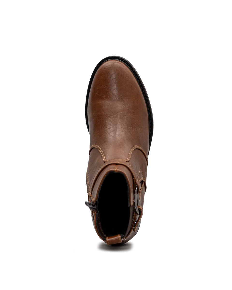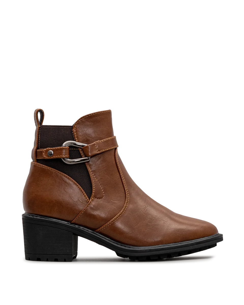 Ajoutez une touche d’élégance à votre garde-robe avec ces bottines marron à boucle pour femme. Conçues avec un talon bloc robuste, elles offrent un équilibre parfait entre confort et style. Leur finition marron lisse s’accompagne d’une boucle décorative qui apporte un accent chic à ce modèle. Faciles à enfiler grâce à leur panneau élastique latéral, ces bottines sont idéales pour une tenue décontractée ou un look plus sophistiqué. Parfaites pour affronter les journées fraîches d’automne-hiver tout en restant à la pointe de la mode.
