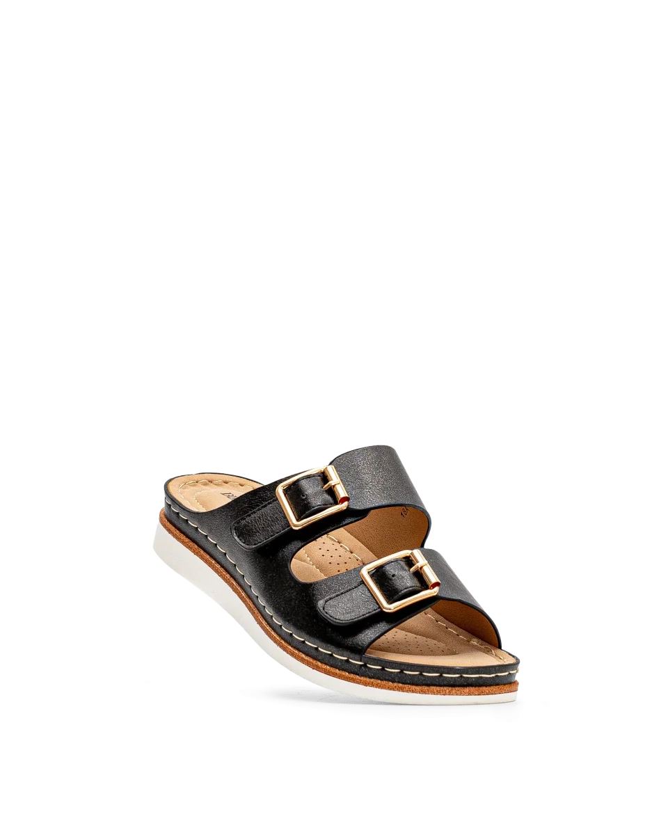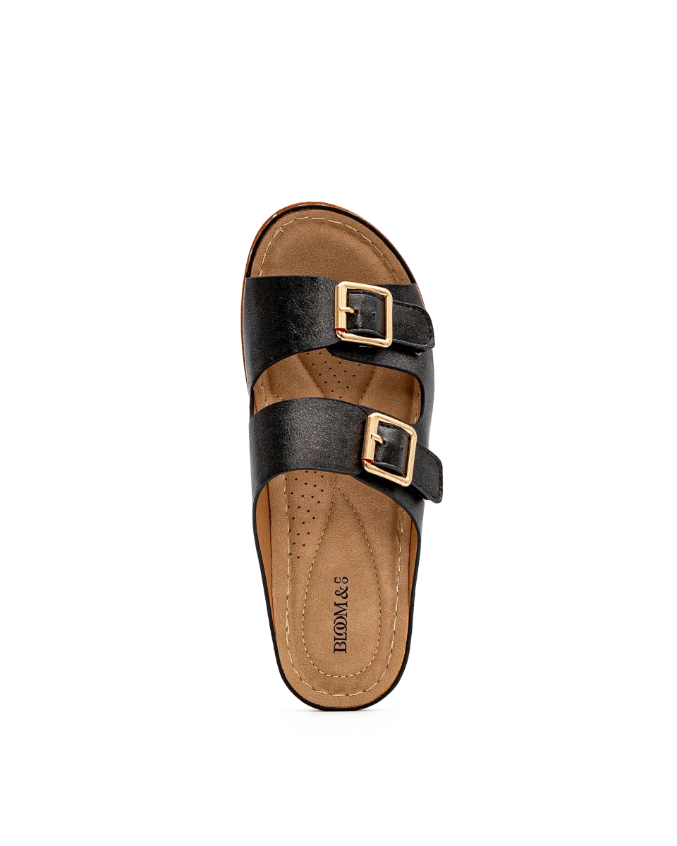 Ces sandales noires à velcros pour femme offrent une silhouette moderne et raffinée. Leur teinte classique s’agence facilement à toutes vos tenues estivales. Grâce à leurs boucles ajustables, elles assurent un ajustement idéal. Un modèle Bloom & Co qui conjugue élégance et soutien.