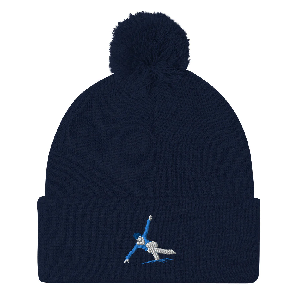 Ce bonnet est idéal pour les hivers froids, il te gardera bien au chaud, et avec style ! Le dessin représente la figure appelée araignée, qui consiste à se laisser glisser en arrière au raz du sol, enfin… de la glace 😜