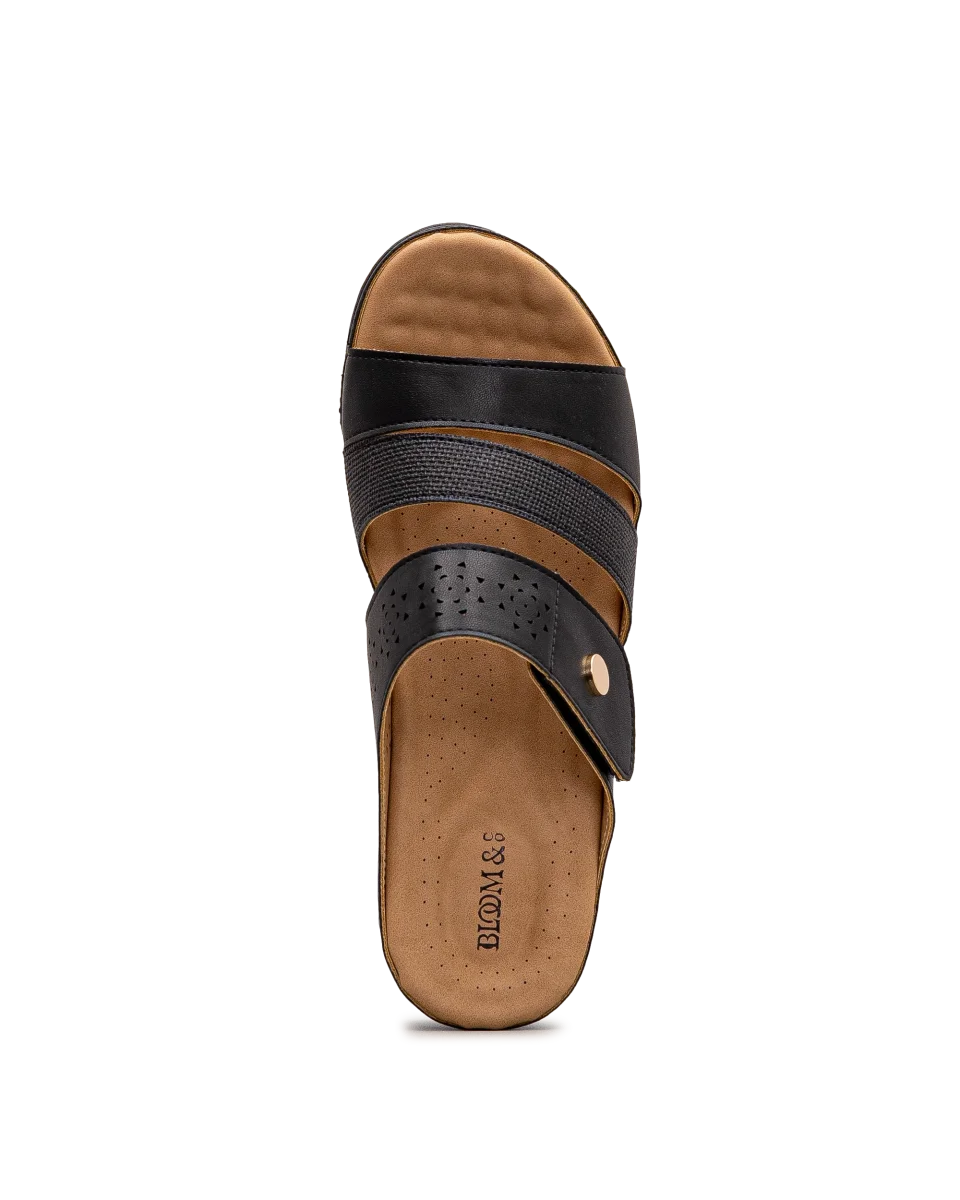 Ces sandales noires Bloom & Co sont idéales pour compléter une tenue avec élégance. Leur finition discrète et moderne s’adapte à toutes les occasions. Faciles à enfiler grâce à leur sangle ajustable, elles assurent un confort durable. Une option pratique et stylée pour la vie de tous les jours.