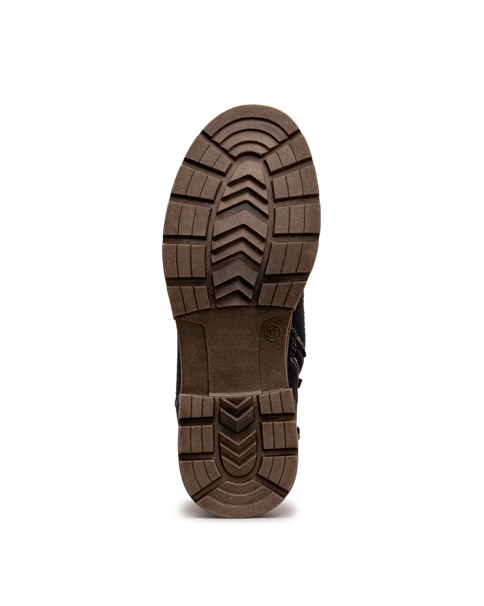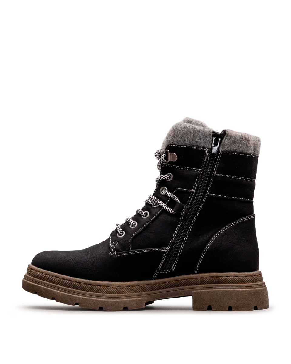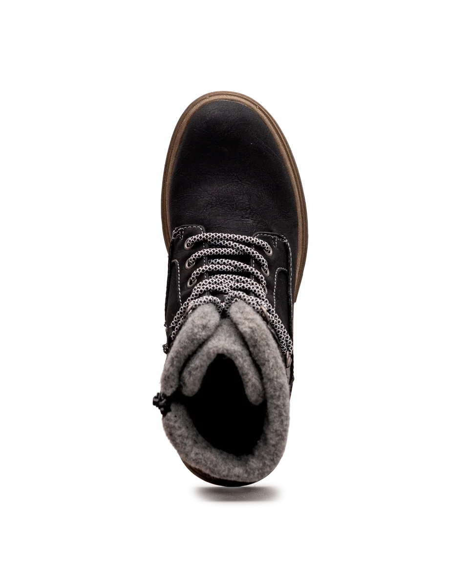Ces bottillons noirs offrent un mélange parfait de style et de fonctionnalité. Leur col rembourré en tissu gris ajoute confort et chaleur à chaque pas. Solides et pratiques, ils conviennent aussi bien aux journées actives qu’aux sorties décontractées. Avec Bloom & Co, l’élégance se combine à un confort optimal pour l’hiver.