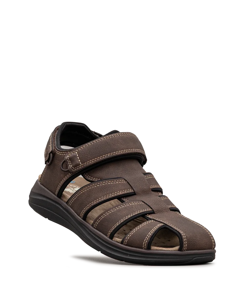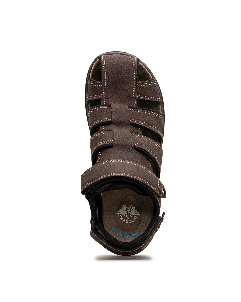 Ces sandales brunes pour homme sont conçues pour offrir stabilité et confort. Leur fermeture à velcro permet un ajustement personnalisé en toute simplicité. La semelle épaisse amortit efficacement les chocs. Une création pratique et fiable de Dockers.