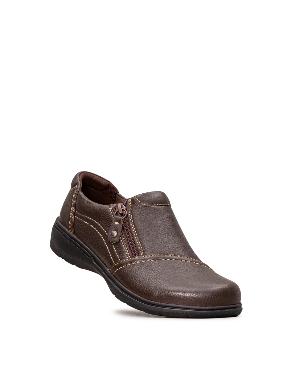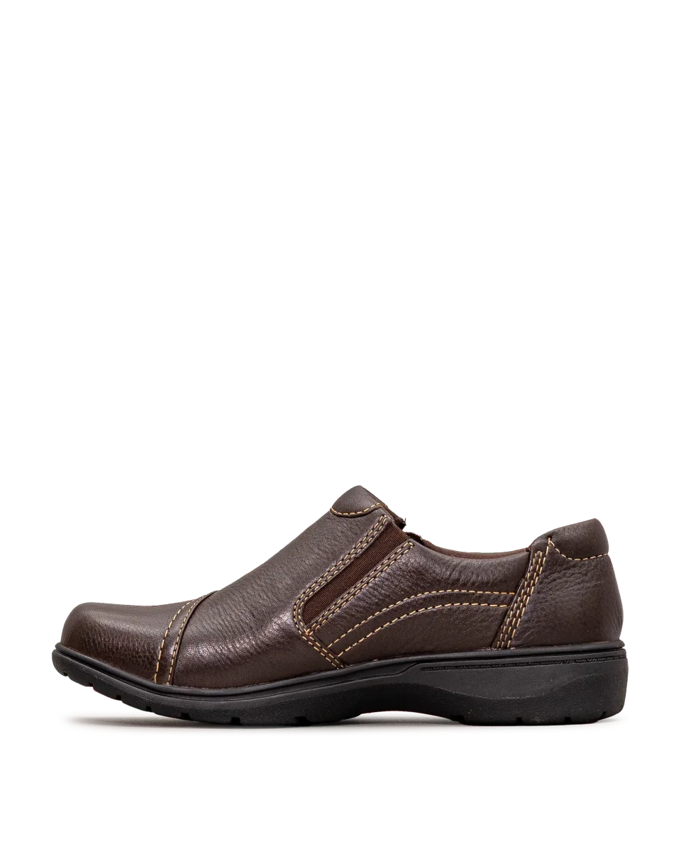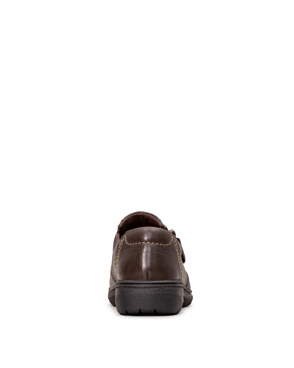 Chaussure en cuir et suède brun foncé conçue pour les journées bien remplies. Sa semelle intérieure Ultimate Comfort de 5 mm soutient le pied, tandis que la semelle extérieure en TPR flexible assure une bonne adhérence. Son ajustement large offre plus d’espace et de confort.