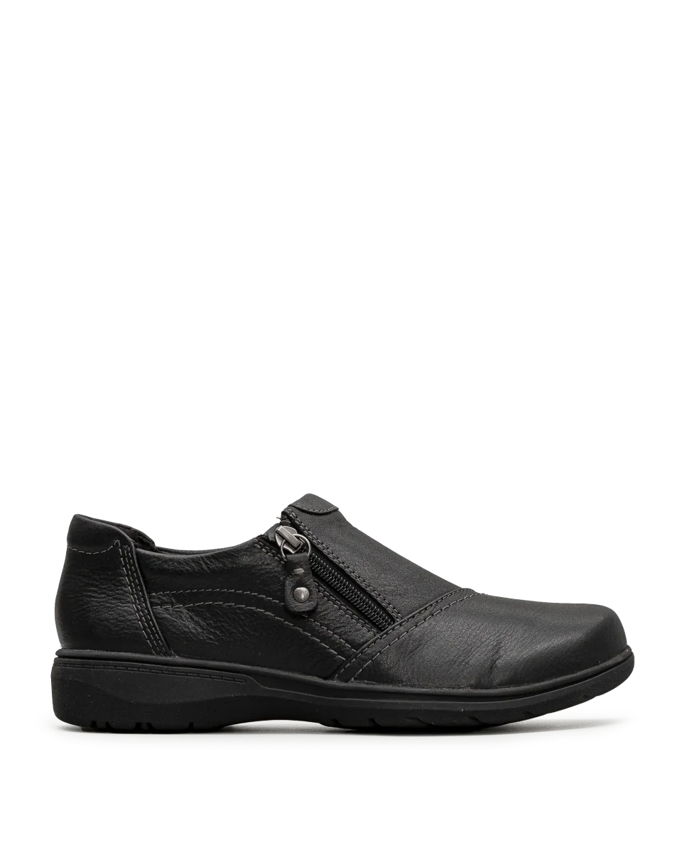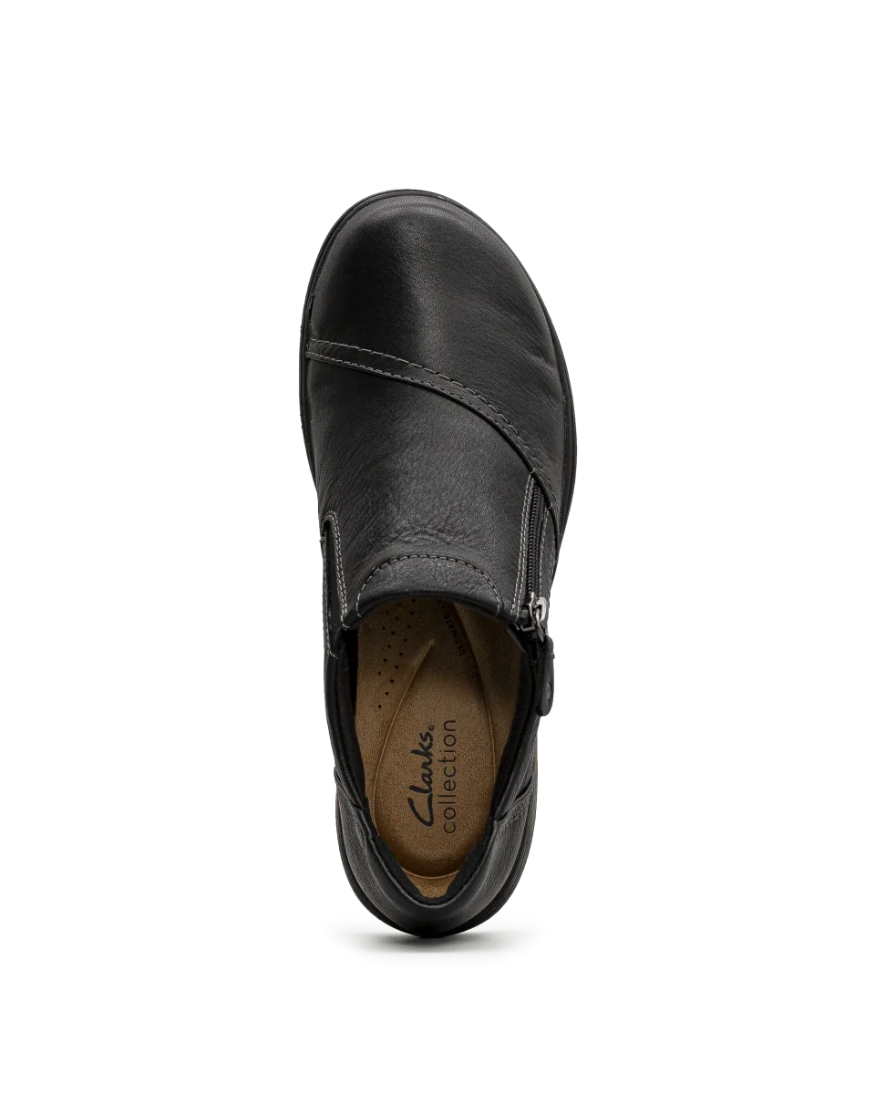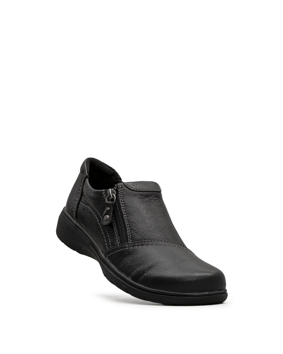 Ces chaussures Clarks noires offrent une allure classique adaptée à toutes les occasions. Leur semelle souple soutient le pied avec efficacité toute la journée. Le zip latéral permet un enfilage facile et rapide. Une solution pratique pour celles qui recherchent style et confort.