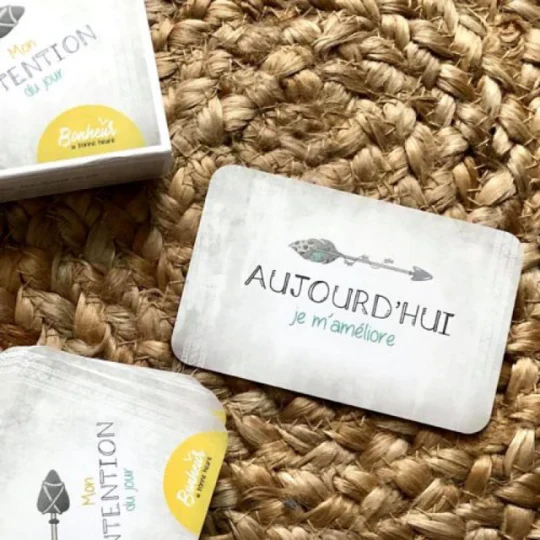 Commencez vos journées avec clarté et intention grâce à nos cartes d’intention. Chaque matin, tirez une carte qui vous offrira des mots inspirants pour orienter vos pensées et motiver vos actions. Que ce soit pour renforcer votre confiance, cultiver la gratitude ou encourager la bienveillance, ces cartes vous aident à aligner votre esprit sur des objectifs positifs et à créer un état d’esprit propice à l’épanouissement personnel.