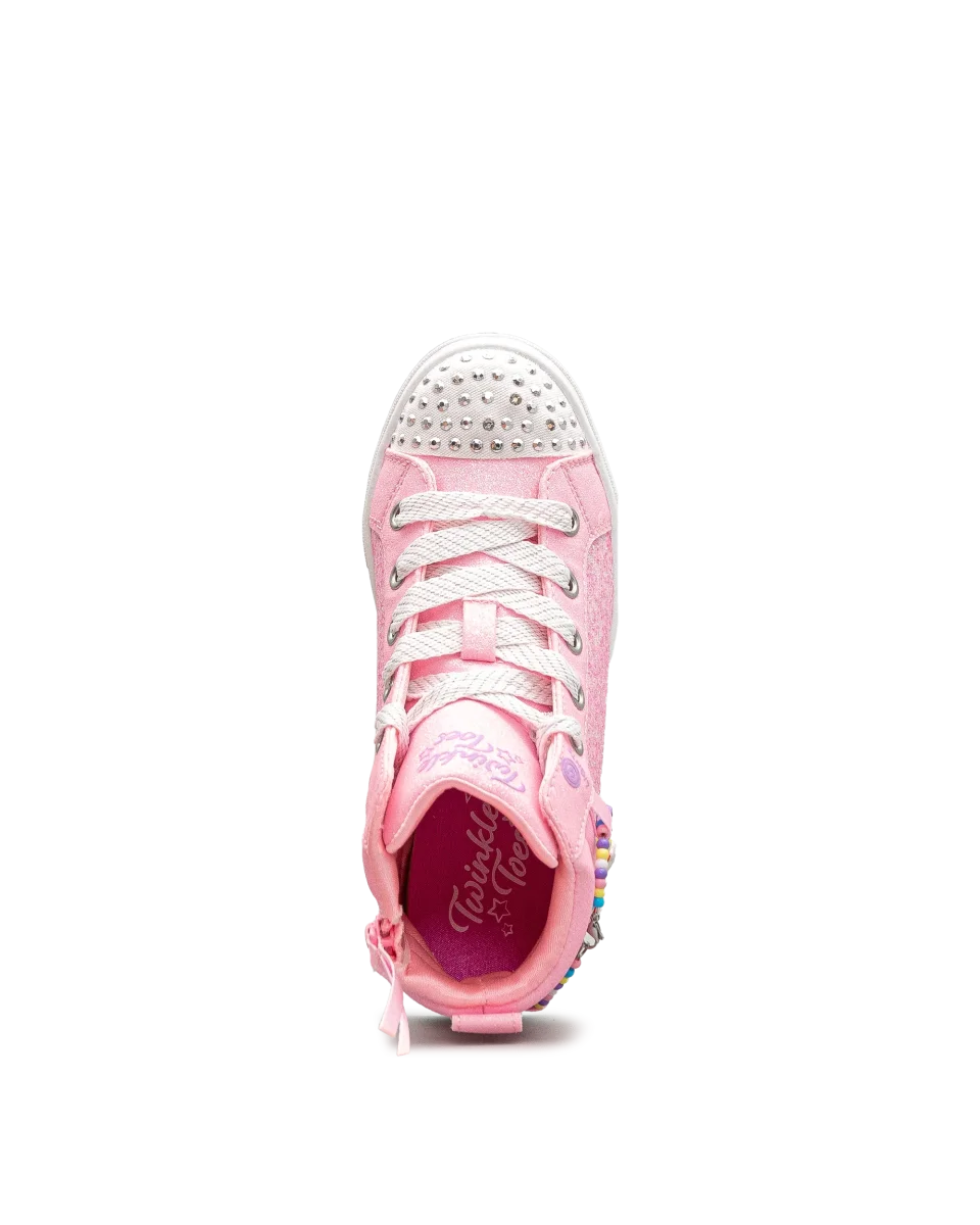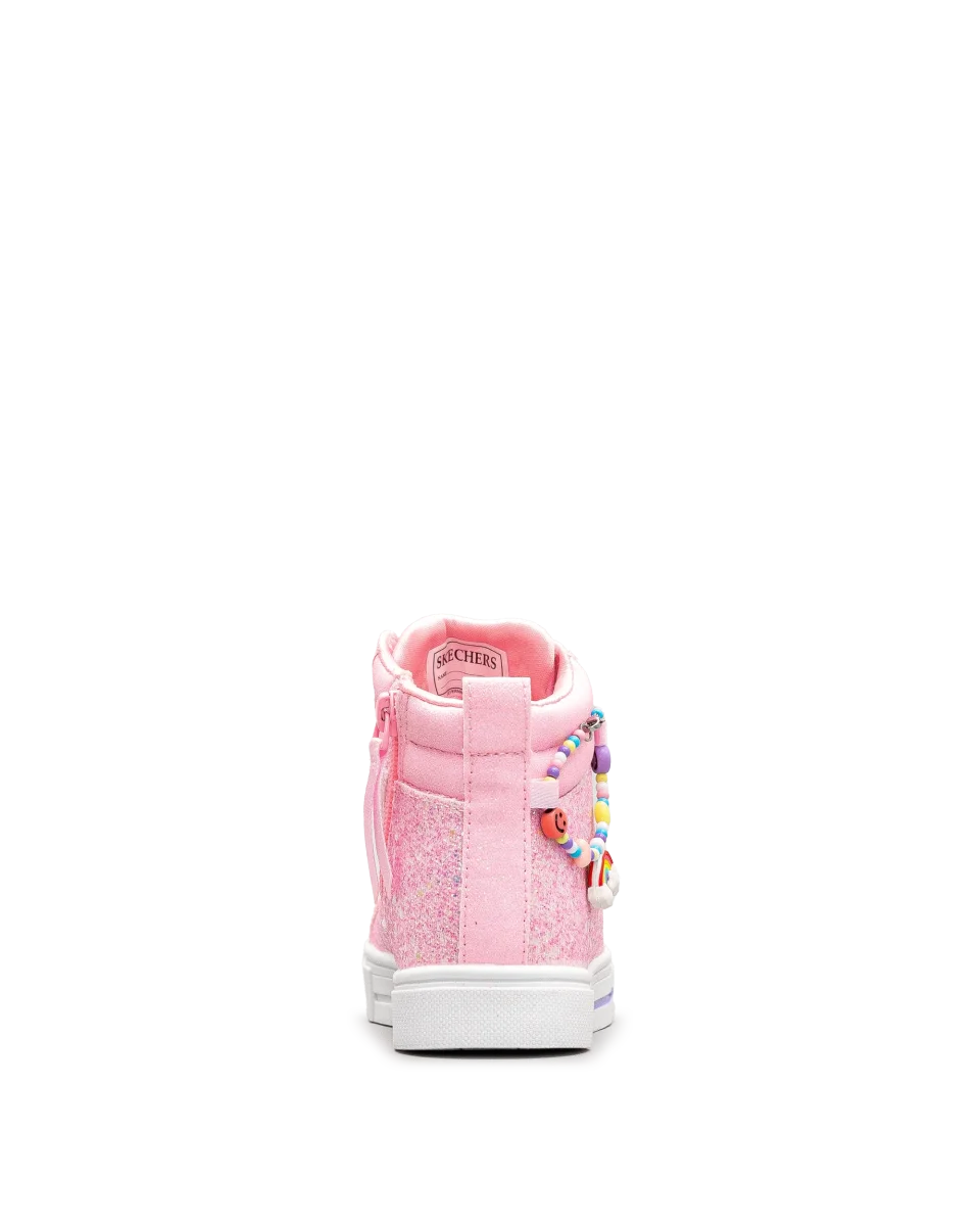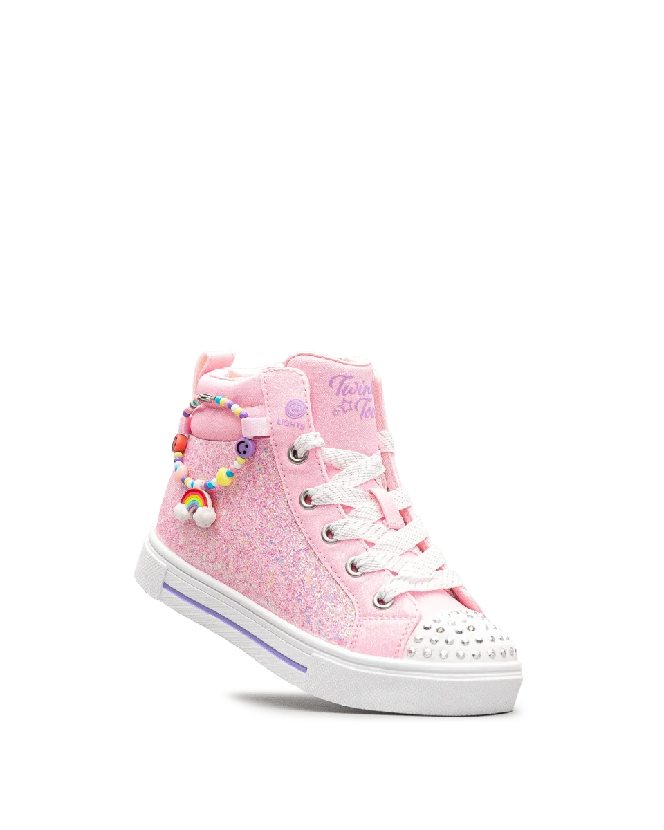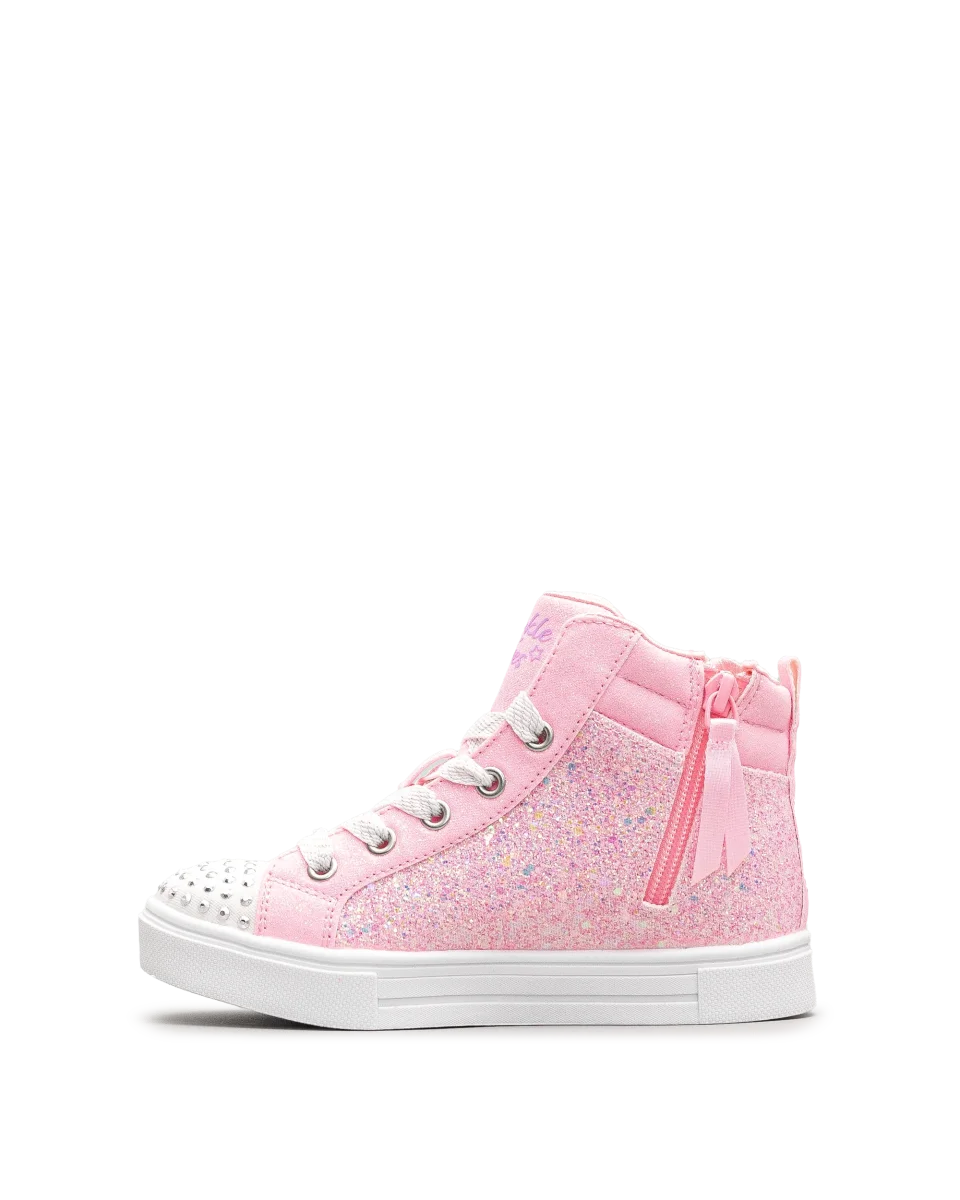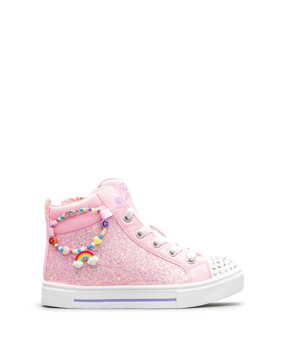 Ces chaussures Skechers roses allient éclat et fantaisie. Leur surface scintillante et les lumières intégrées séduisent à chaque pas. Les breloques ludiques apportent une touche originale. Un choix parfait pour les enfants qui aiment briller.
