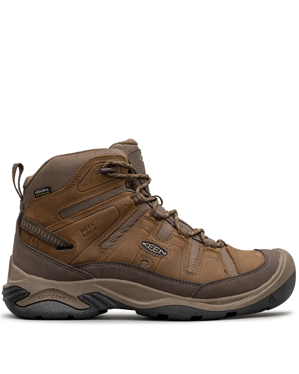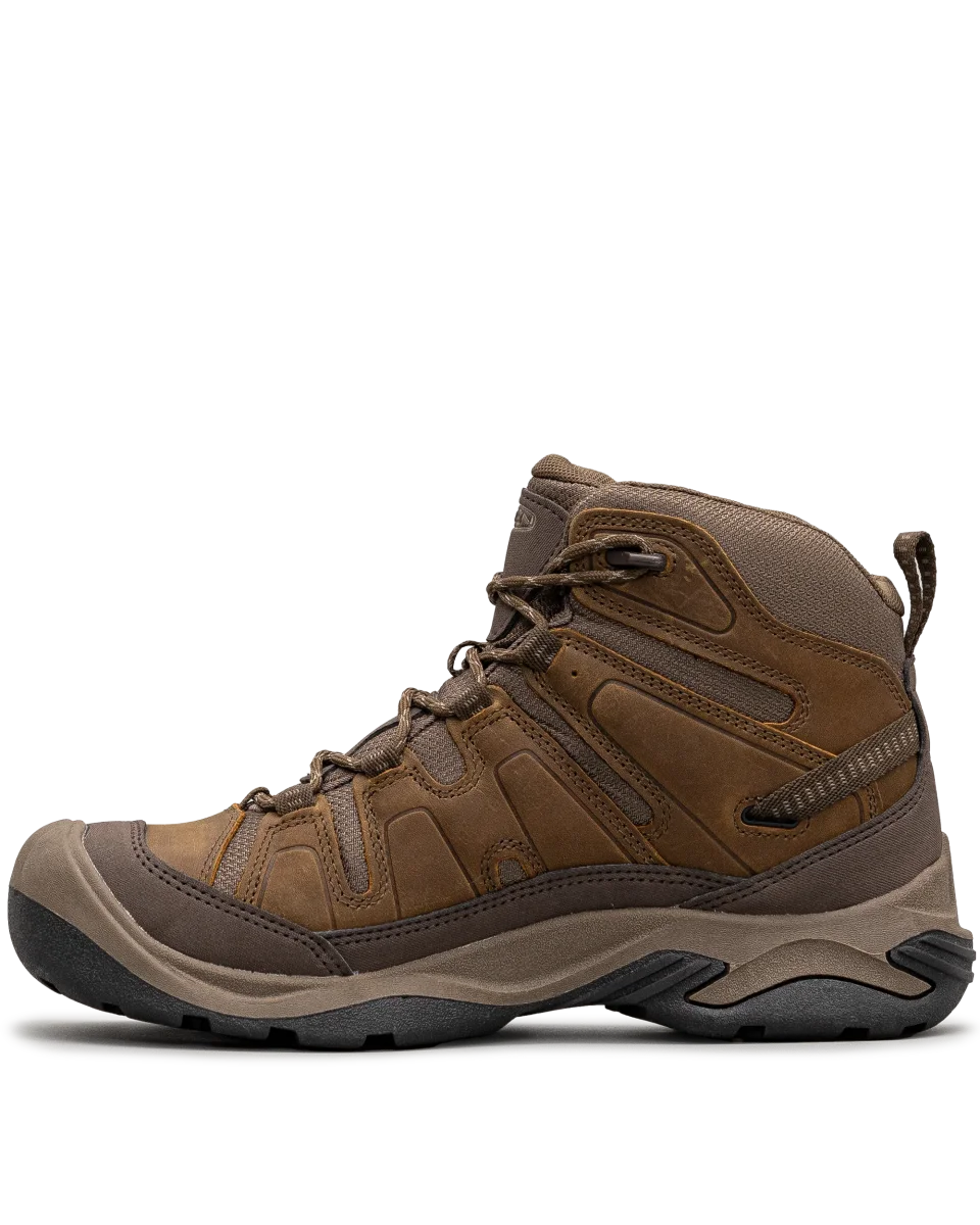 Les bottes Keen Circadia Mid WP en tan sont parfaites pour les amateurs de plein air et les aventuriers. Conçues avec une membrane imperméable KEEN.DRY™, elles gardent vos pieds au sec tout en assurant une excellente respirabilité. Leur technologie Heel Lock améliore le maintien du pied pour plus de stabilité sur les terrains accidentés. La semelle extérieure robuste garantit une adhérence optimale, tandis que la doublure rembourrée procure un confort durable, même lors de longues marches. Idéales pour la randonnée et les explorations en pleine nature, ces bottes allient style, protection et performance.