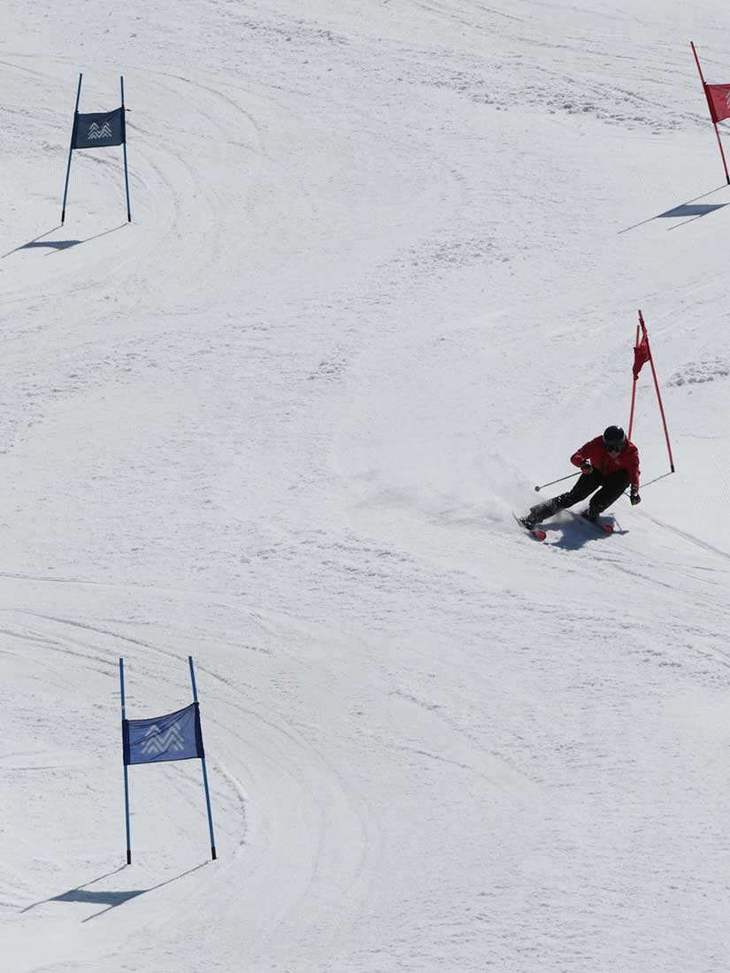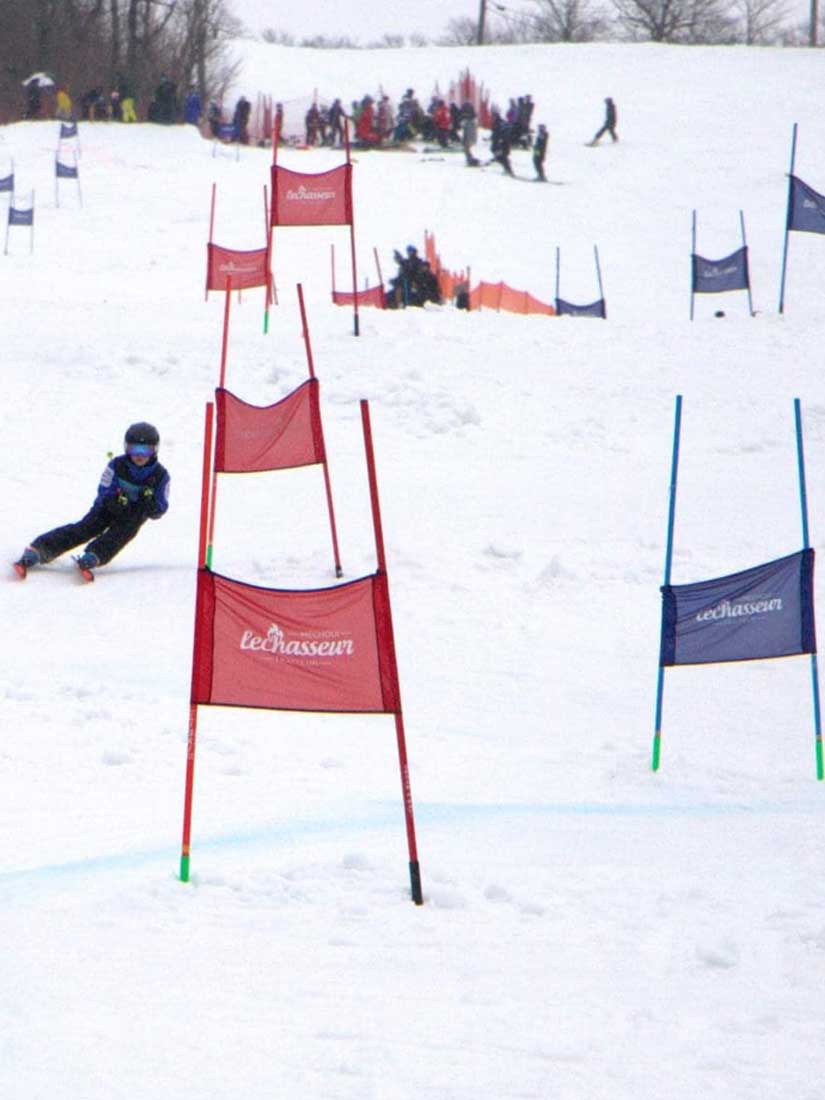 Fanion GS (super giant slalom ski competition) pour compétition de ski FIS ou compétition standard. Imprimé et cousu dans notre manufacture à Québec.