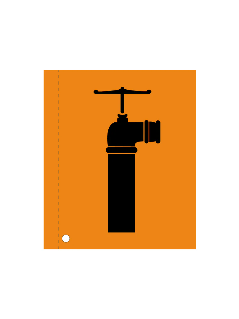 Fanion en pvc mesh de couleur orange fluo pour indiquer la présence d’un hydrant. Résistant à l’eau et la neige. facile à installer : fourreau de 1” pour insertion dans un piquet (non inclus) et œillet au bas pour fixation. Format 10″ large x 11.75″ haut.