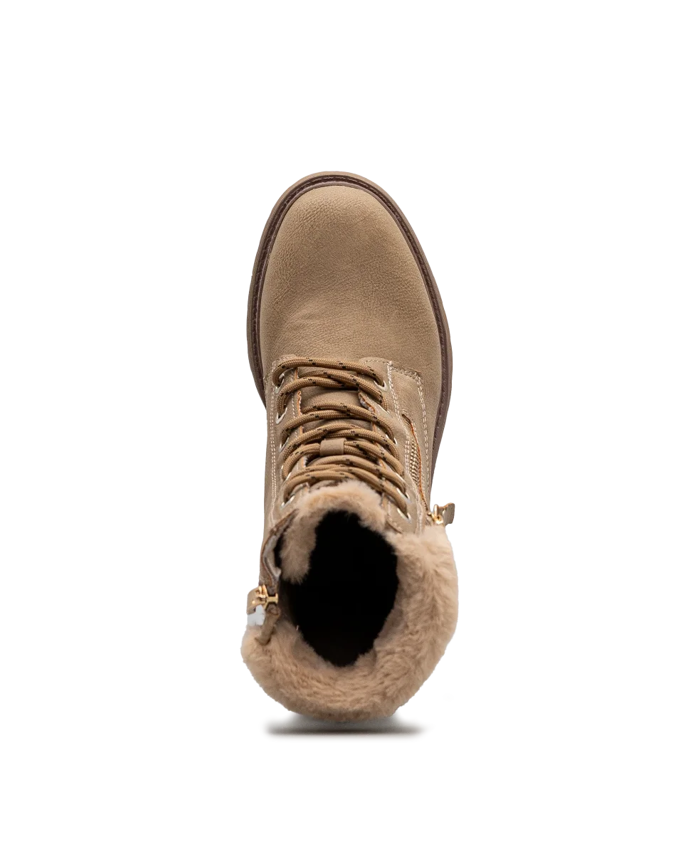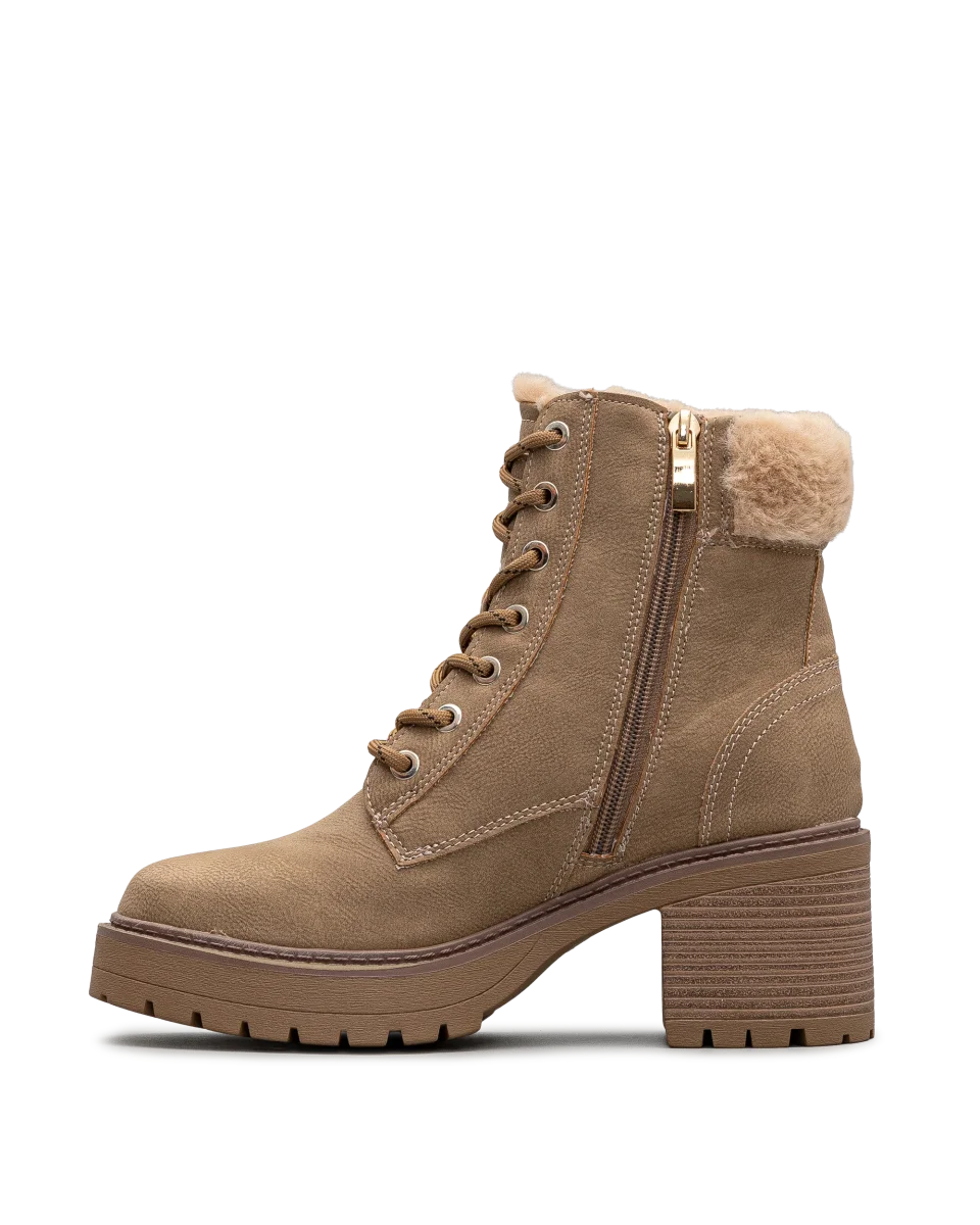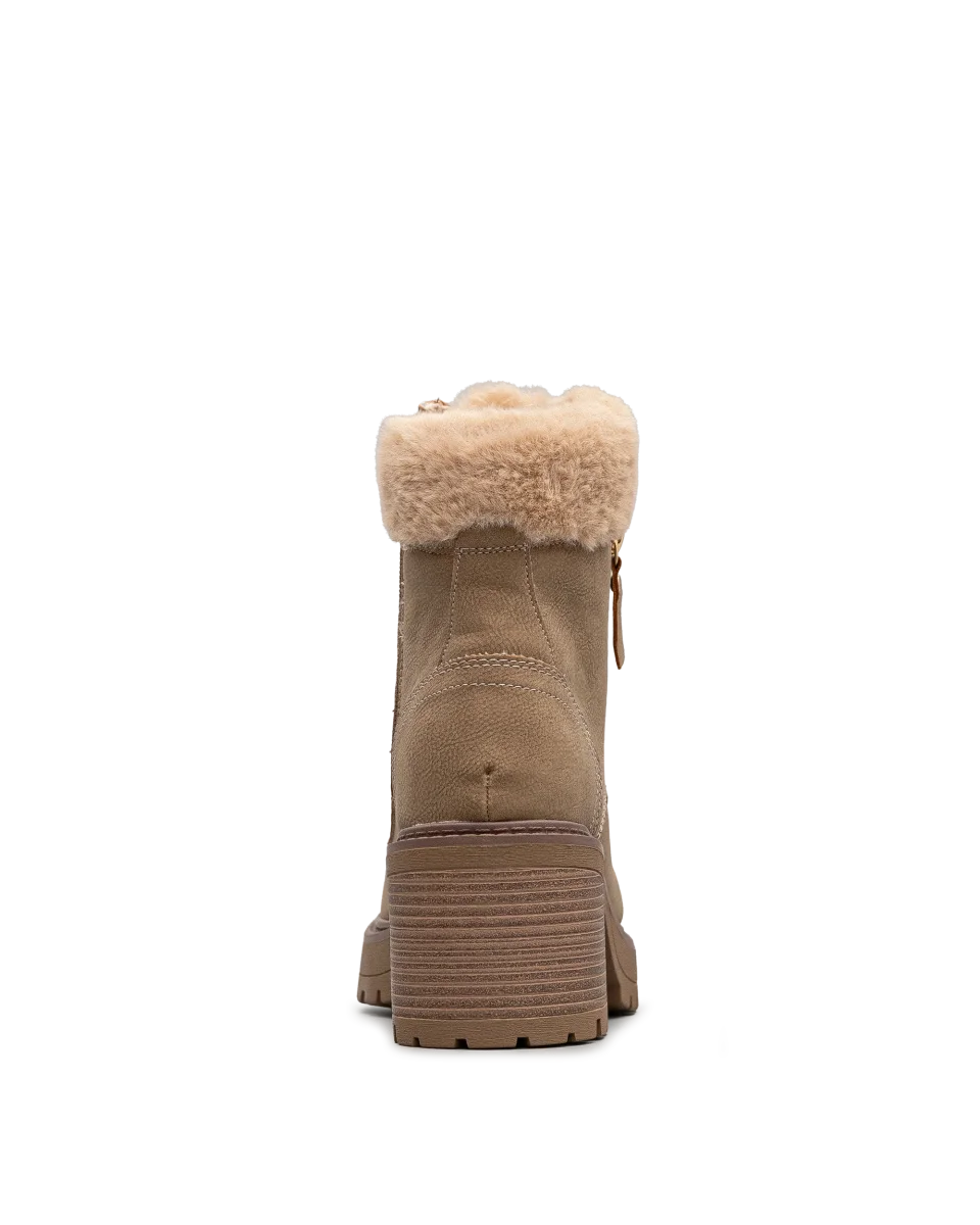 Ces bottines beiges à lacets offrent un parfait mélange de confort et d’élégance pour l’hiver. Leur doublure en fausse fourrure douce garde vos pieds bien au chaud, tandis que le talon épais et les semelles crantées assurent une adhérence optimale sur les surfaces glissantes. Dotées d’une fermeture éclair pratique, ces bottines allient style et fonctionnalité, idéales pour les journées froides ou les sorties décontractées en automne et en hiver.