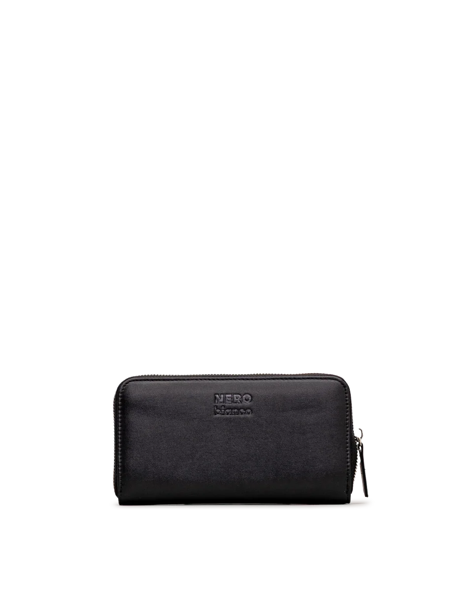 Ce portefeuille en cuir végane noir séduit par son allure sobre et intemporelle. Ses compartiments bien organisés permettent de garder cartes et billets en ordre. La fermeture éclair sécurisée assure une utilisation pratique au quotidien. Un accessoire signé Nero Bianco, parfait pour allier style et fonctionnalité.