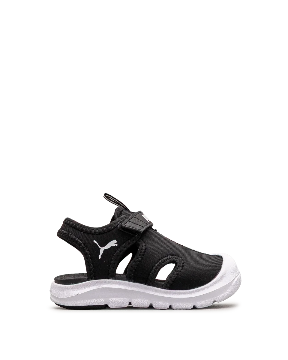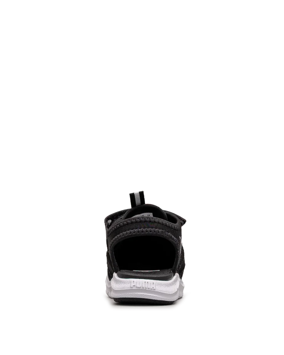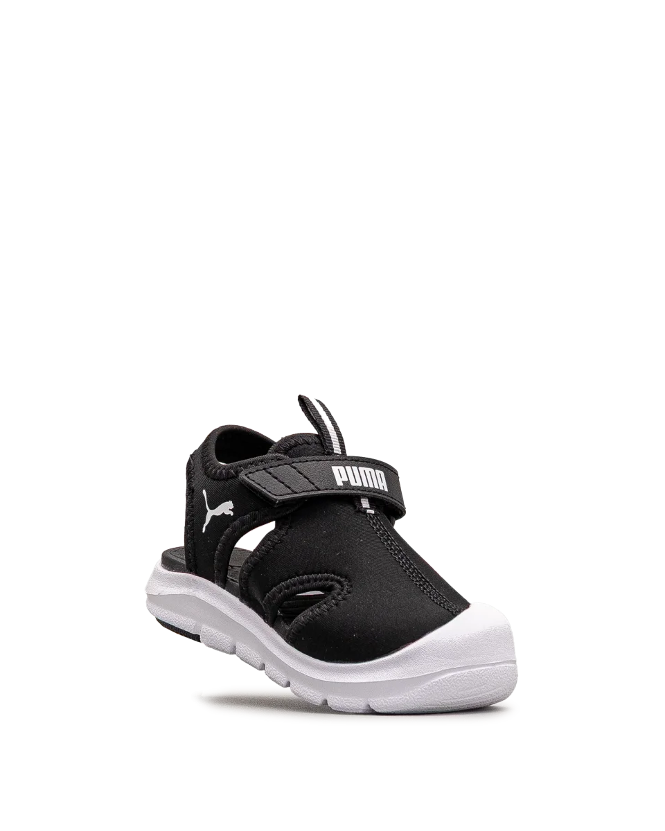 Ces sandales Puma noires sont idéales pour les enfants toujours en mouvement. Leur structure fermée protège les petits pieds lors des jeux en plein air. Faciles à ajuster grâce à leur bande auto-agrippante, elles offrent un soutien sécurisé. Un choix pratique pour les journées d’été bien remplies.