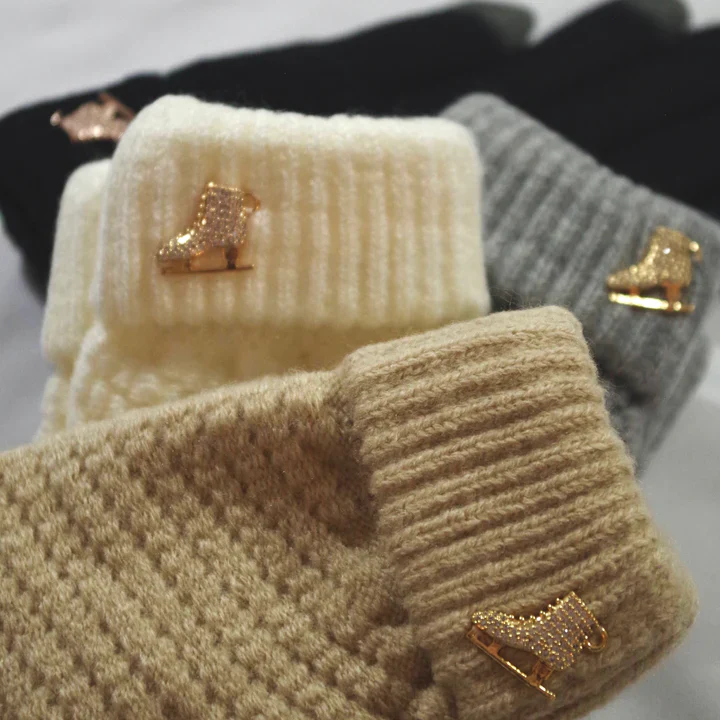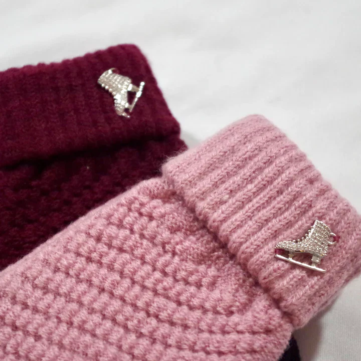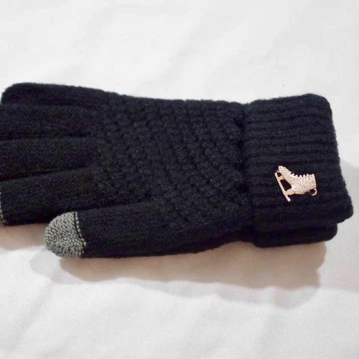 Les gants de glisse sont faits d’un mélange d’acrylique. Les doigts de l’écran tactile vous permettront de texter sans avoir froid, et le charm patinage apportera de la classe à toutes vos tenues préférées.