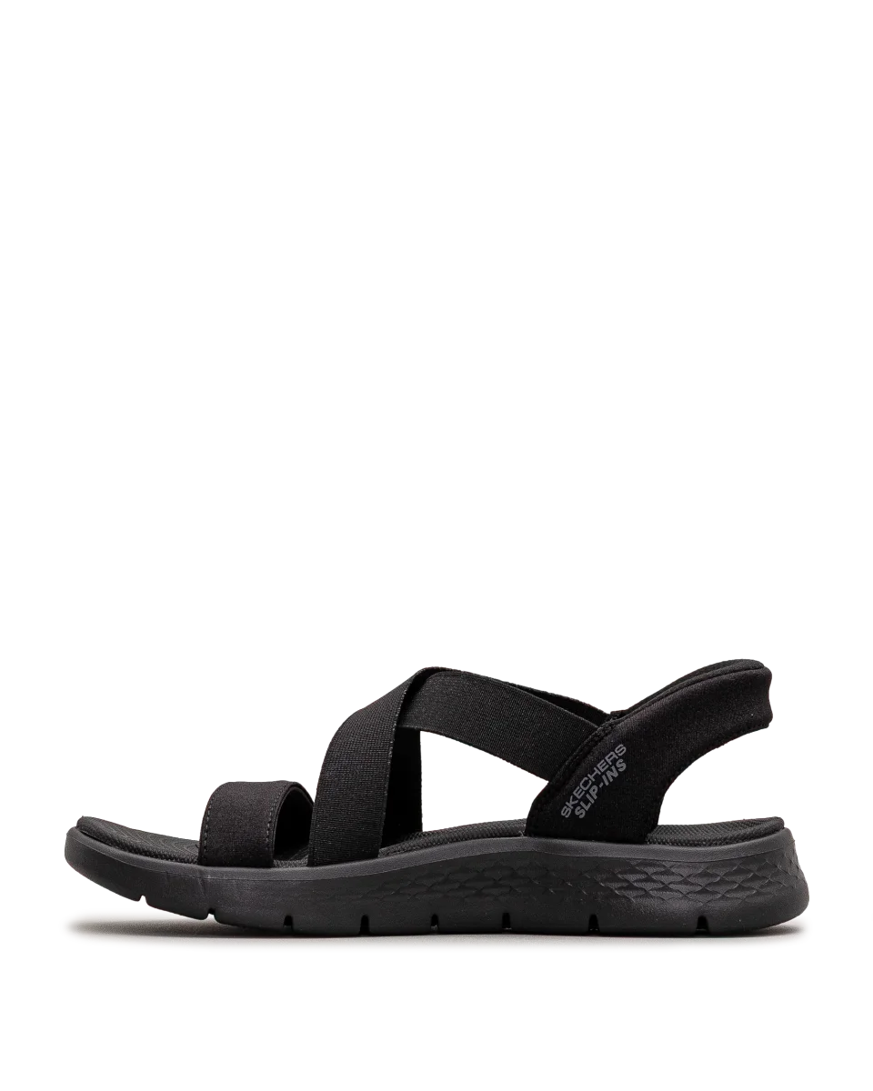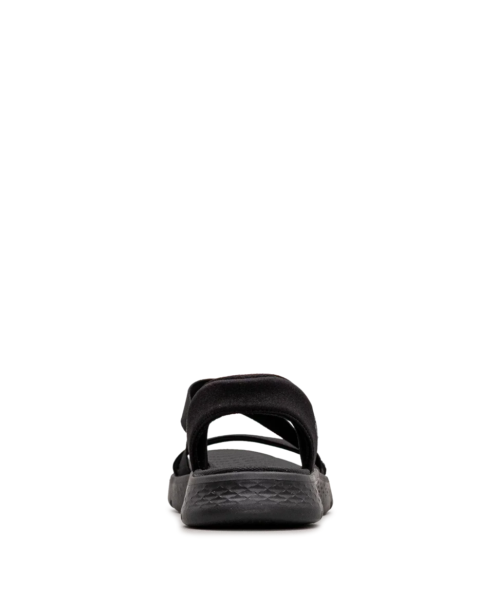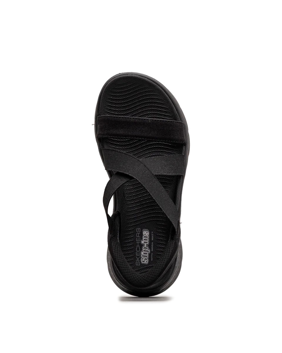 Ces sandales sport noires combinent souplesse et légèreté pour un confort tout au long de la journée. Leur structure minimaliste épouse naturellement le pied. Faciles à enfiler grâce aux bandes élastiques croisées, elles permettent un bon maintien sans compromis. Une valeur sûre pour les amatrices de confort actif signée Skechers