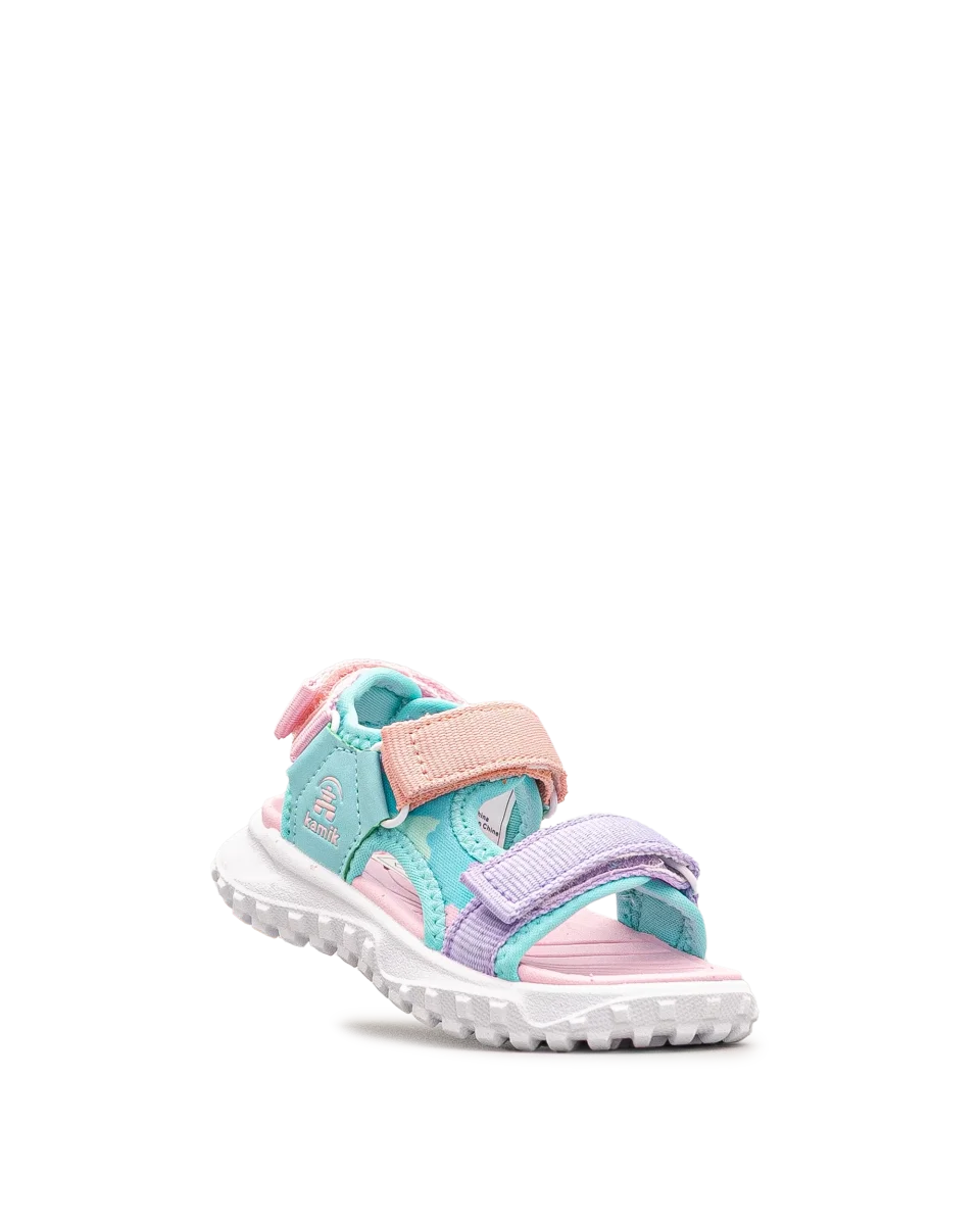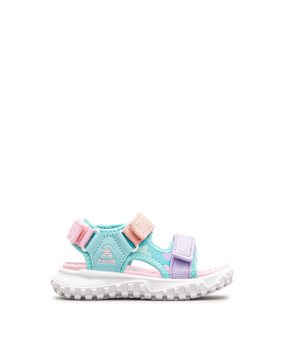Ces sandales Kamik douces et colorées sont pensées pour les tout-petits. Leur conception légère et les attaches pratiques assurent un ajustement parfait. Agréables à porter au quotidien, elles soutiennent les premiers pas avec stabilité. Une sandale estivale parfaite pour les petites aventurières.