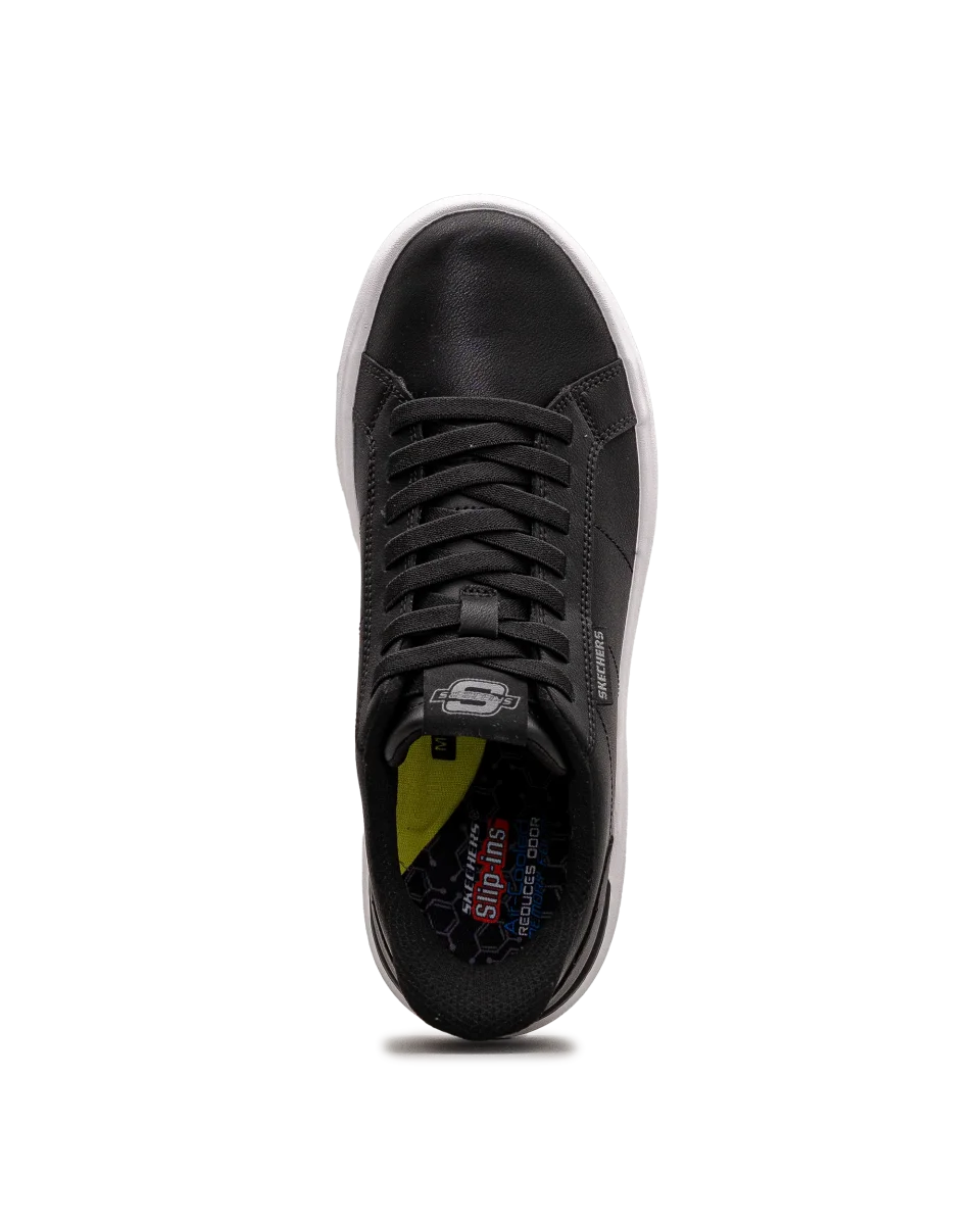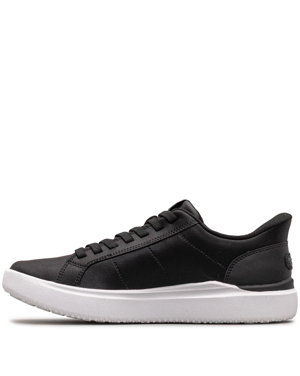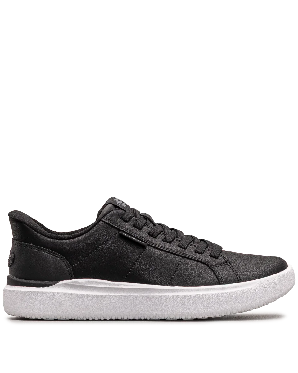 Ces chaussures Skechers pour homme noires misent sur un design sobre et polyvalent. Leur semelle blanche épaisse apporte une touche contemporaine tout en assurant une excellente adhérence. Faciles à porter au quotidien, elles conviennent autant pour le style que pour le confort. Un bon choix pour les amateurs de mode décontractée.