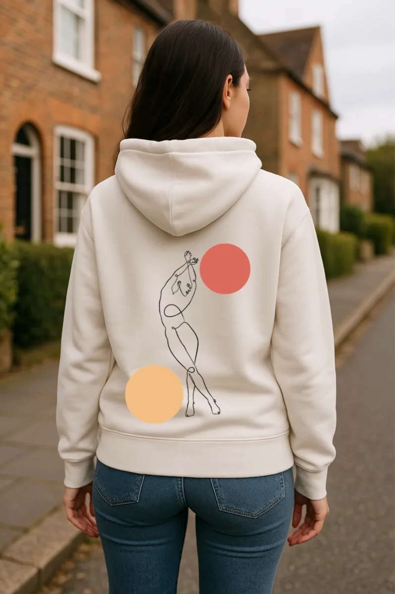 Hoodie 460g 100% Coton – Broderie Minimaliste – Design Danse des Formes (F)