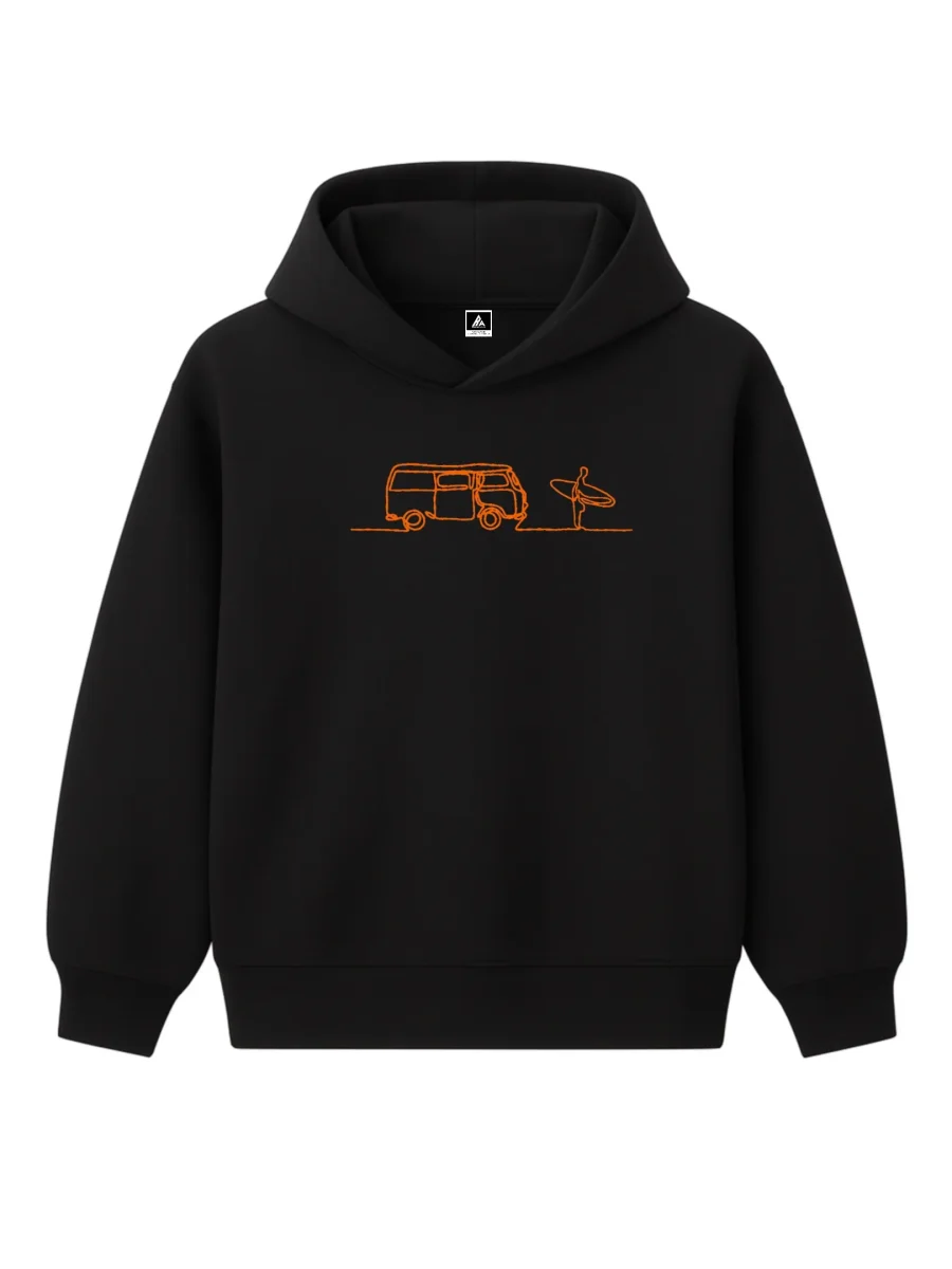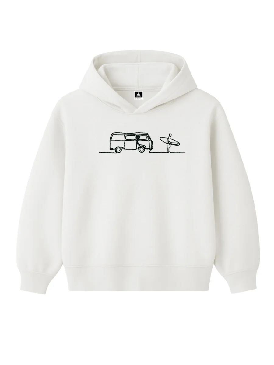 Hoodie 460g 100% Coton – Broderie Minimaliste – Design Surf (F)
