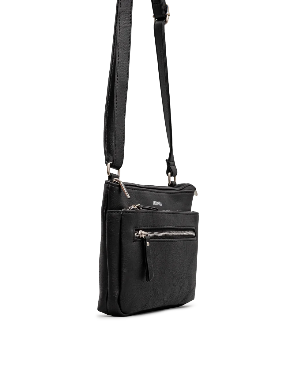 Ce petit sac noir combine une silhouette sobre avec une organisation bien pensée. Ses poches extérieures zippées offrent un accès facile à vos essentiels. Léger et compact, il se porte aisément à l’épaule ou en bandoulière. Bloom&Co propose ici un accessoire discret et polyvalent.