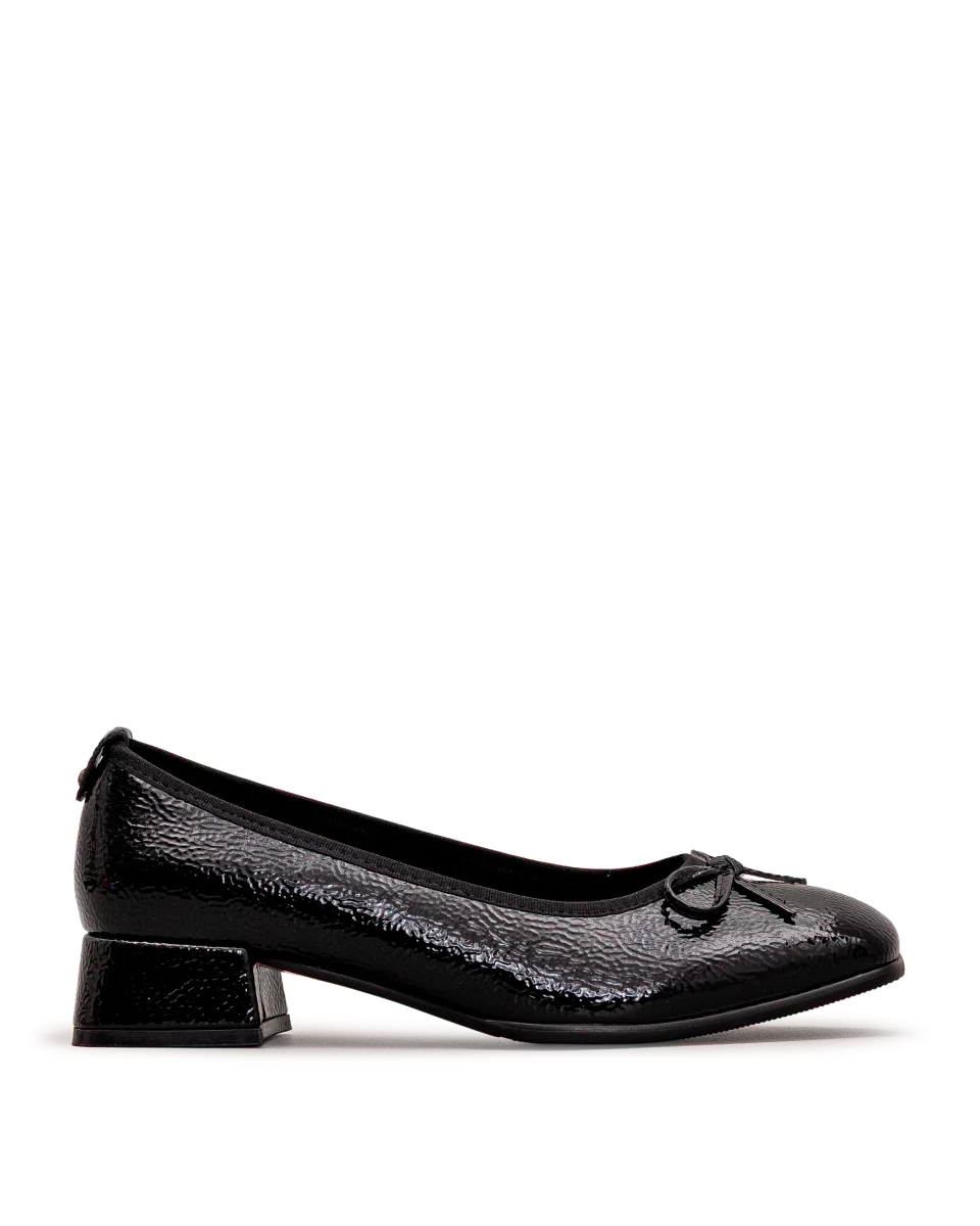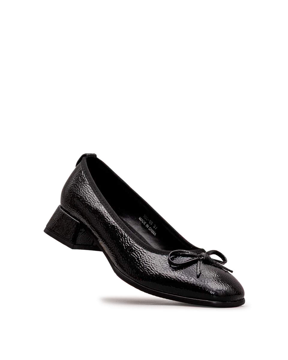 Ces chaussures noires offrent un style intemporel avec leur finition vernie et leur petit nœud délicat. Leur talon bas procure confort et stabilité au quotidien. Faciles à agencer, elles complètent aussi bien vos tenues de bureau que vos ensembles décontractés. Un choix raffiné et polyvalent signé Bloom&Co.