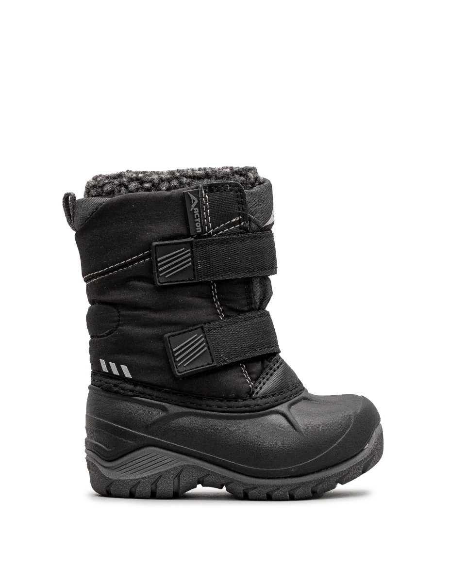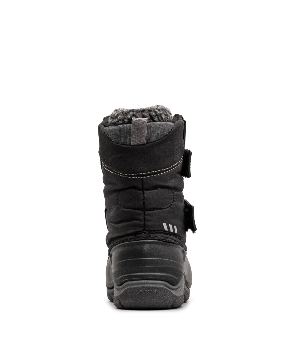 Les bottes d’hiver Acton pour enfants offrent une protection optimale contre le froid et l’humidité. Conçues pour être faciles à enfiler, elles sont dotées de bandes auto-grippantes qui permettent un ajustement parfait et sécurisé. L’intérieur doublé de tissu isolant garde les pieds bien au chaud, tandis que la coque extérieure imperméable protège contre la neige et l’eau. La semelle antidérapante assure une excellente traction, idéale pour marcher en toute sécurité sur les surfaces glacées. Avec leur design sobre et résistant, ces bottes sont le choix parfait pour des aventures hivernales confortables et stylées.