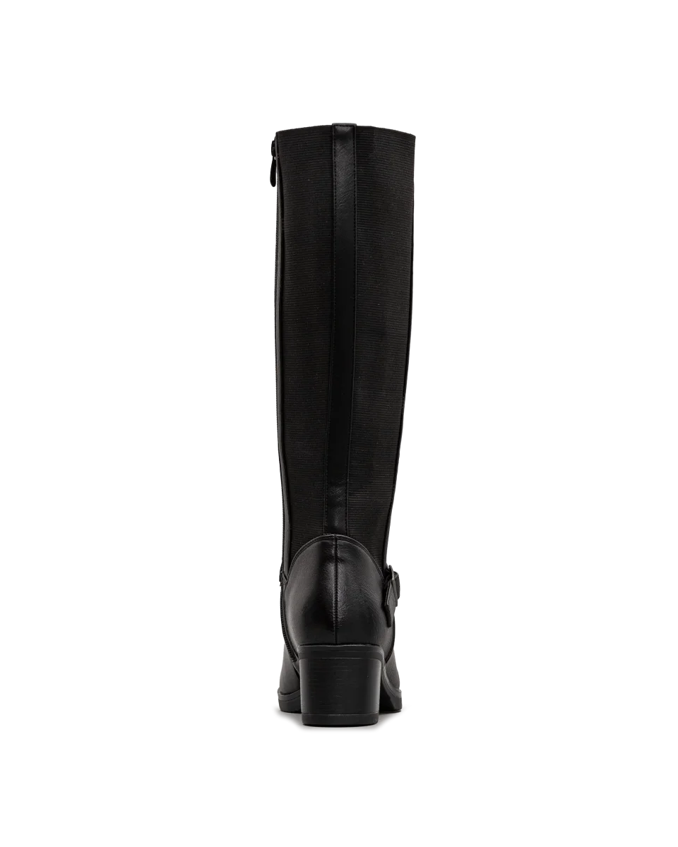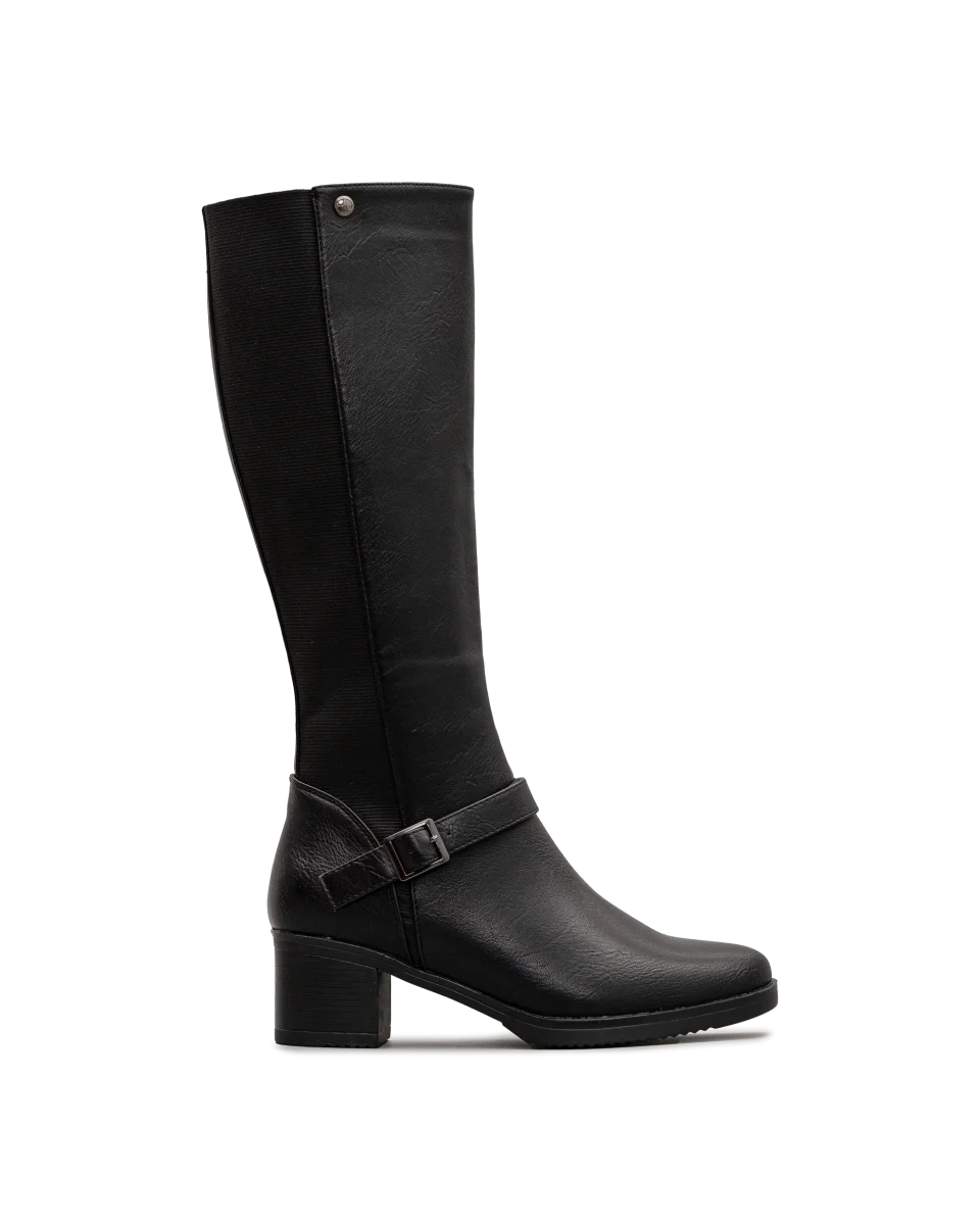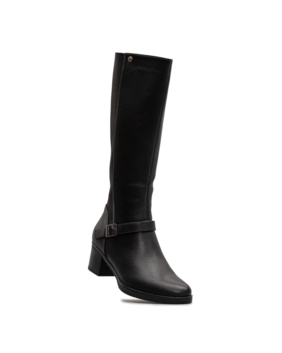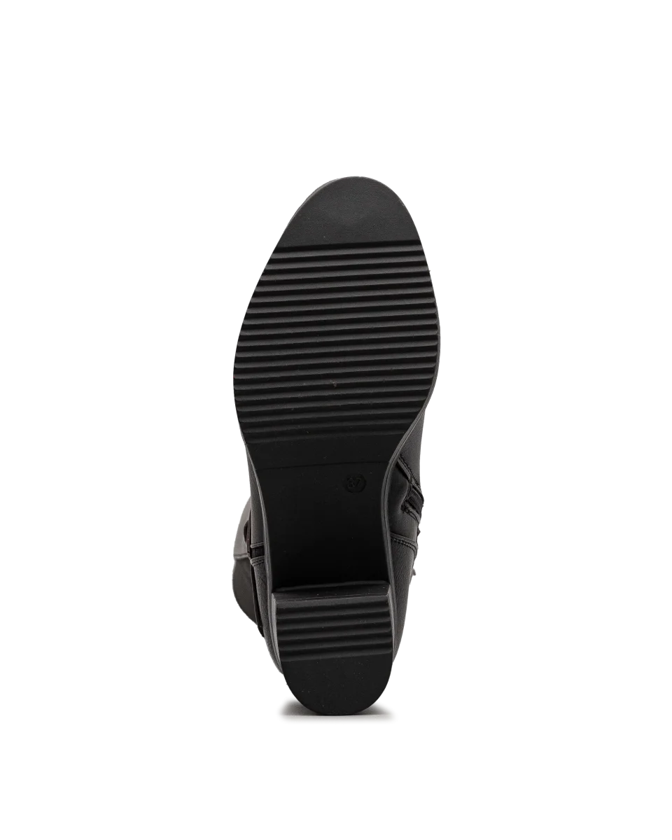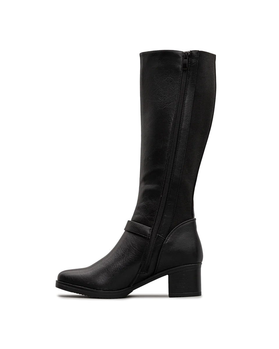 Ces bottes hautes noires pour femmes associent à la perfection style et confort. Le talon bloc de hauteur moyenne garantit un bon maintien tout en apportant une touche de sophistication à votre tenue. La tige haute affine la silhouette et procure une bonne protection contre les éléments, tandis que la boucle ajustable ajoute un détail moderne et pratique. Faciles à enfiler grâce à une fermeture éclair latérale, ces bottes sont idéales pour les journées fraîches de l’automne ou du début de l’hiver. Un indispensable polyvalent pour votre garde-robe.