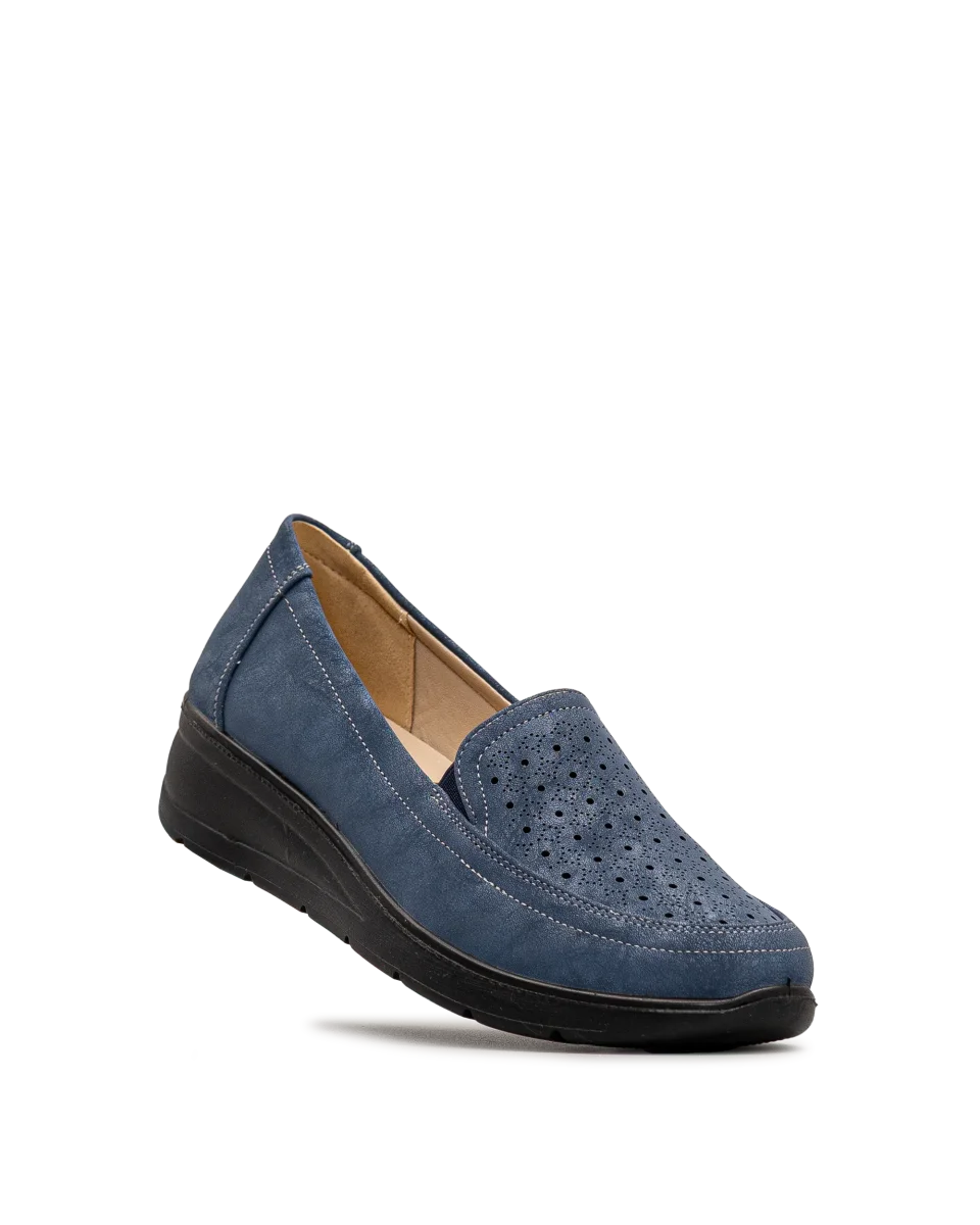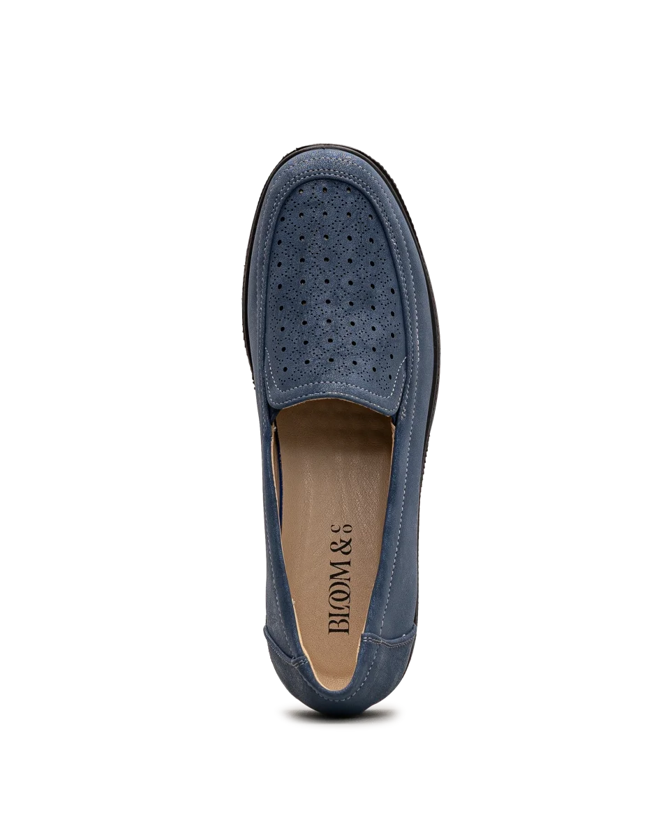 Ces chaussures marine pour femme se démarquent par leur allure raffinée et leur confort supérieur. Leur dessus perforé assure une bonne aération au fil des heures. Faciles à enfiler, elles épousent naturellement le pied. Un choix signé Bloom & Co pour conjuguer élégance et bien-être.