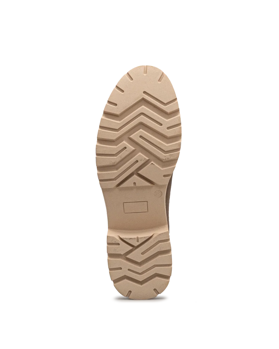 Optez pour un style intemporel avec ces bottines Chelsea en daim kaki. Leur semelle épaisse beige vous assure un confort optimal et une bonne adhérence tout au long de la journée. Ces bottines sont faciles à enfiler grâce à leur design sans fermeture éclair et leurs élastiques latéraux, offrant ainsi une touche pratique tout en restant élégantes. Parfaites pour compléter votre tenue automne-hiver, elles s’adaptent aussi bien à un look décontracté qu’à une tenue plus sophistiquée.