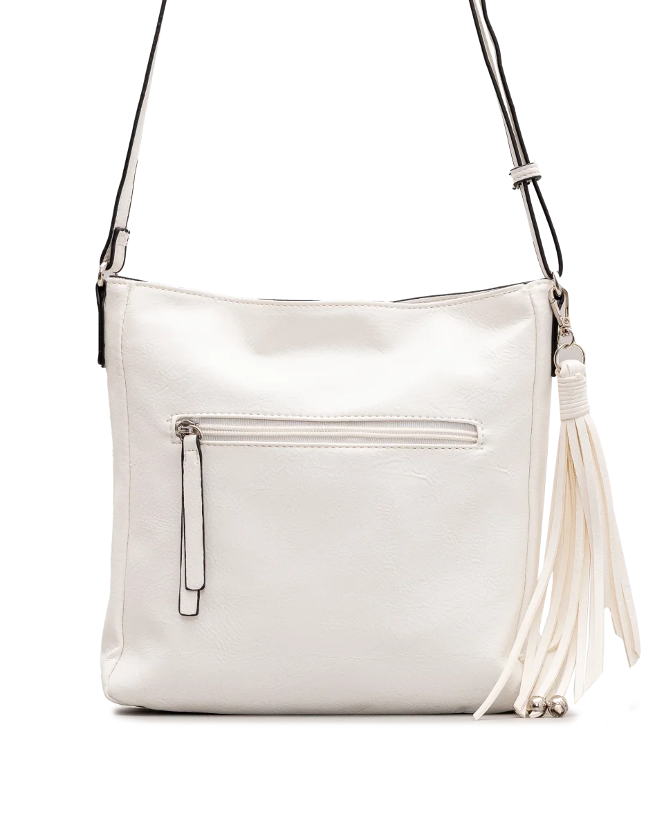 Ce sac à bandoulière blanc séduit par son look épuré et ses détails élégants. Ses deux poches zippées à l’avant offrent un accès rapide à vos essentiels. Sa sangle ajustable permet un porté confortable toute la journée. Avec ce modèle, Bloom&Co propose un accessoire à la fois moderne et fonctionnel.