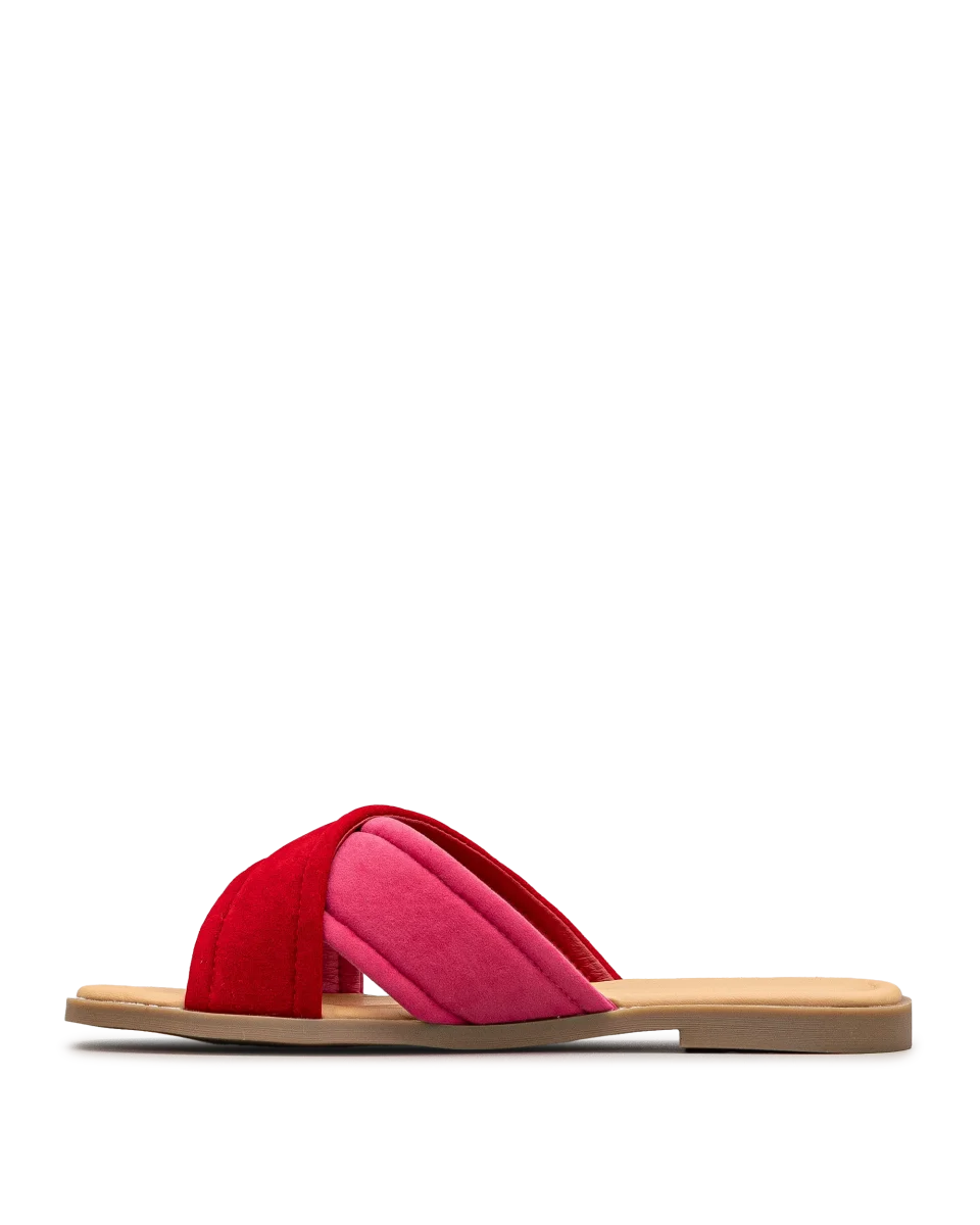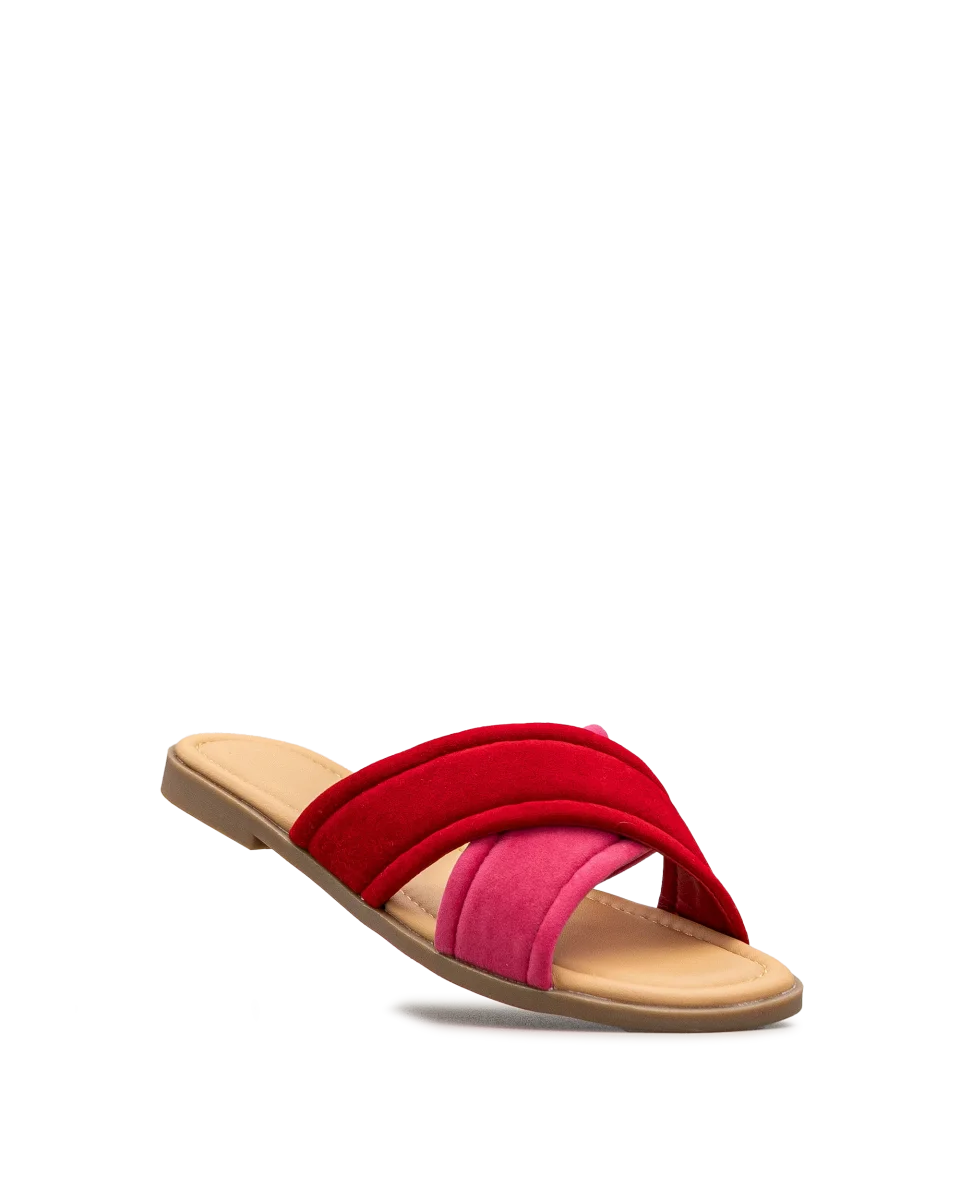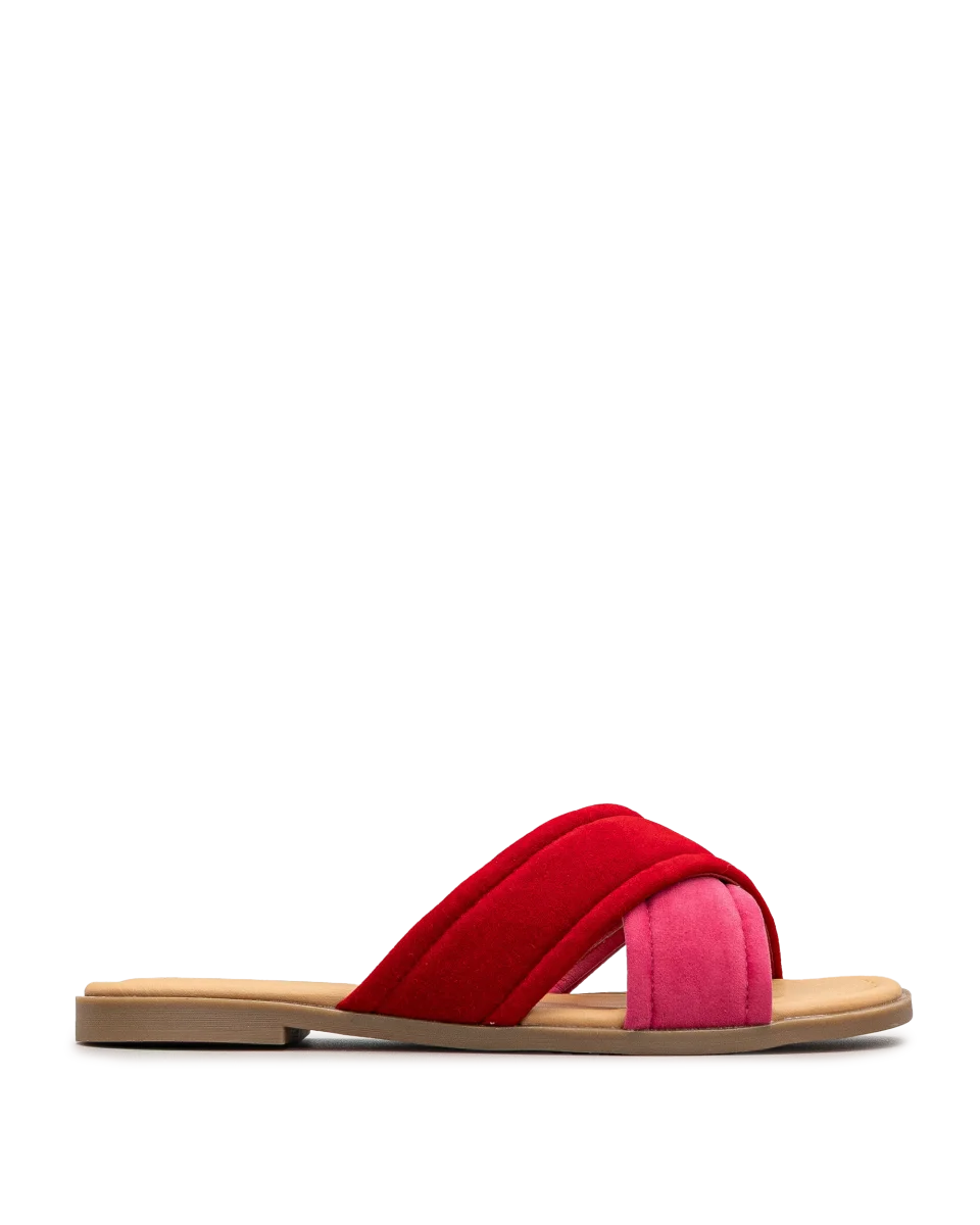 Ces sandales Bloom & Co rouges se démarquent par leur design audacieux et raffiné. Le mélange de teintes vives et de matières douces assure un confort irrésistible. Faciles à enfiler, elles sont idéales pour les journées décontractées. Une option parfaite pour un style estival plein de caractère.