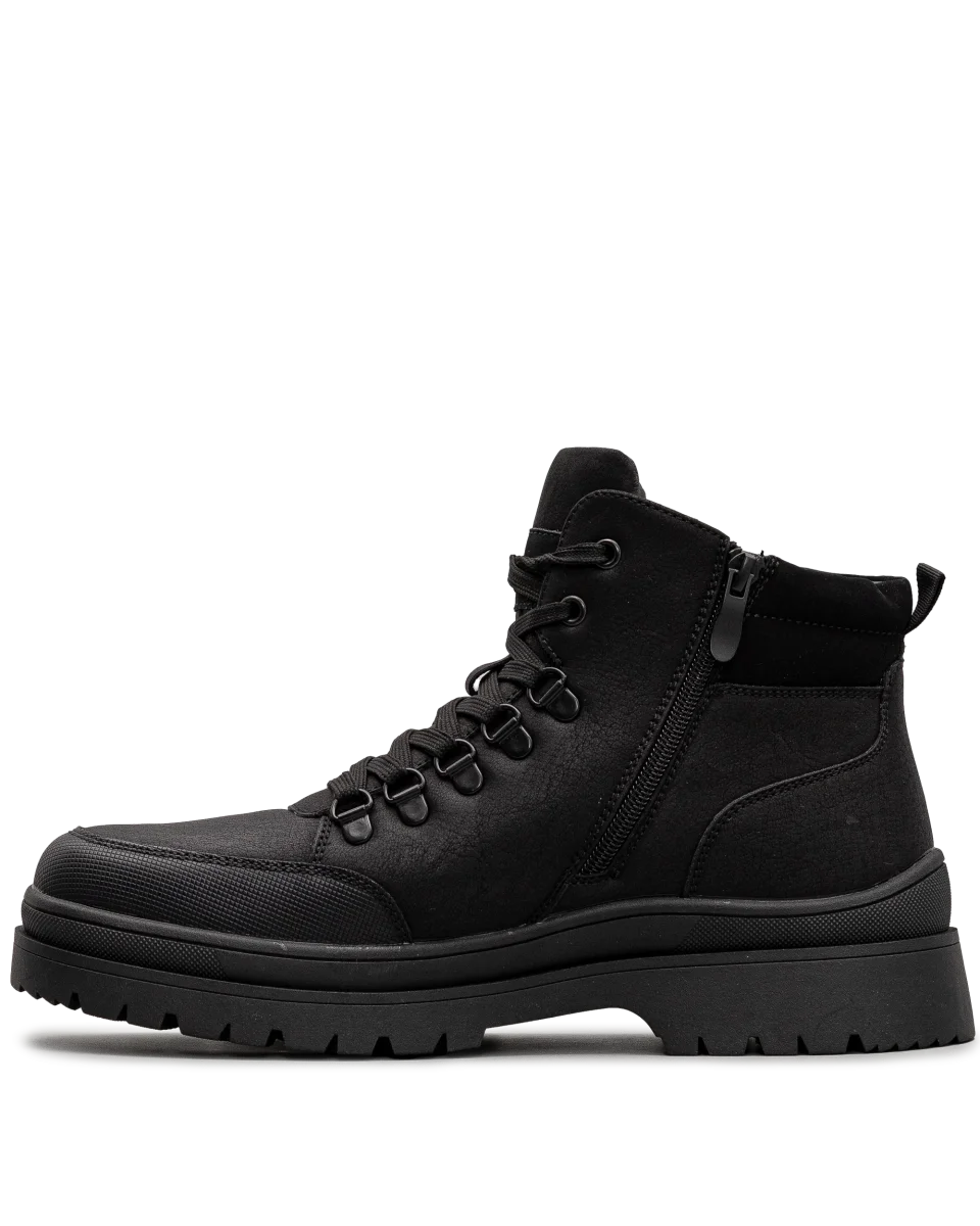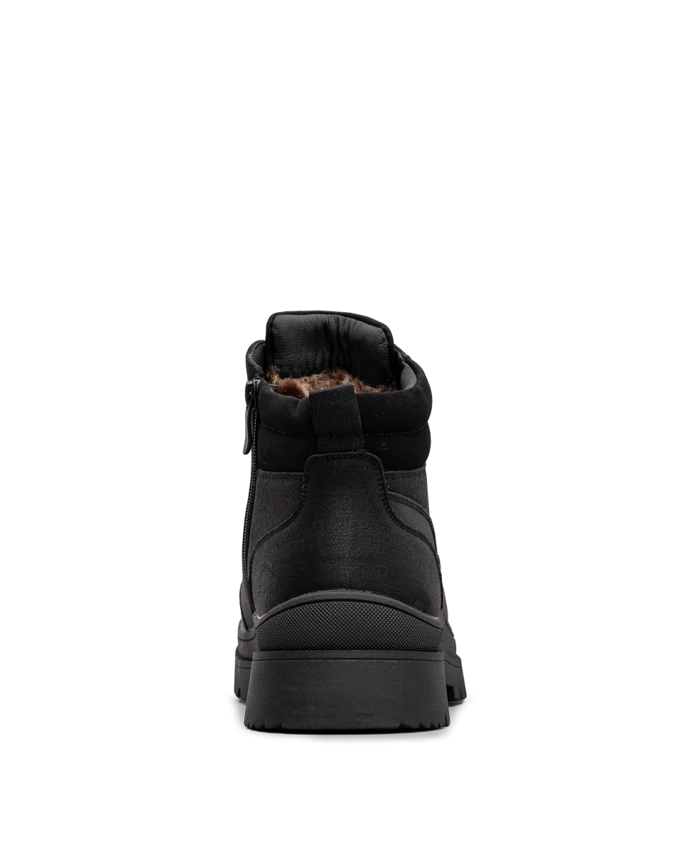 Ces bottes d’hiver pour hommes, entièrement noires, sont le choix idéal pour allier style et performance durant la saison froide. Conçues pour résister aux intempéries, elles sont dotées d’une isolation efficace pour garder vos pieds au chaud et au sec. La semelle crantée offre une excellente adhérence, même sur les surfaces glissantes, tandis que leur design minimaliste en fait un modèle polyvalent et facile à porter. Que ce soit pour une sortie en ville ou pour affronter les rigueurs de l’hiver, ces bottes vous garantissent confort et protection.