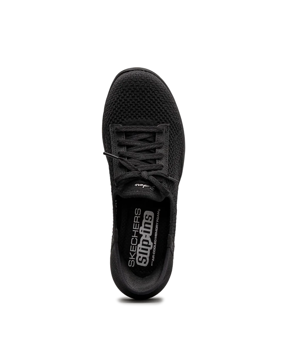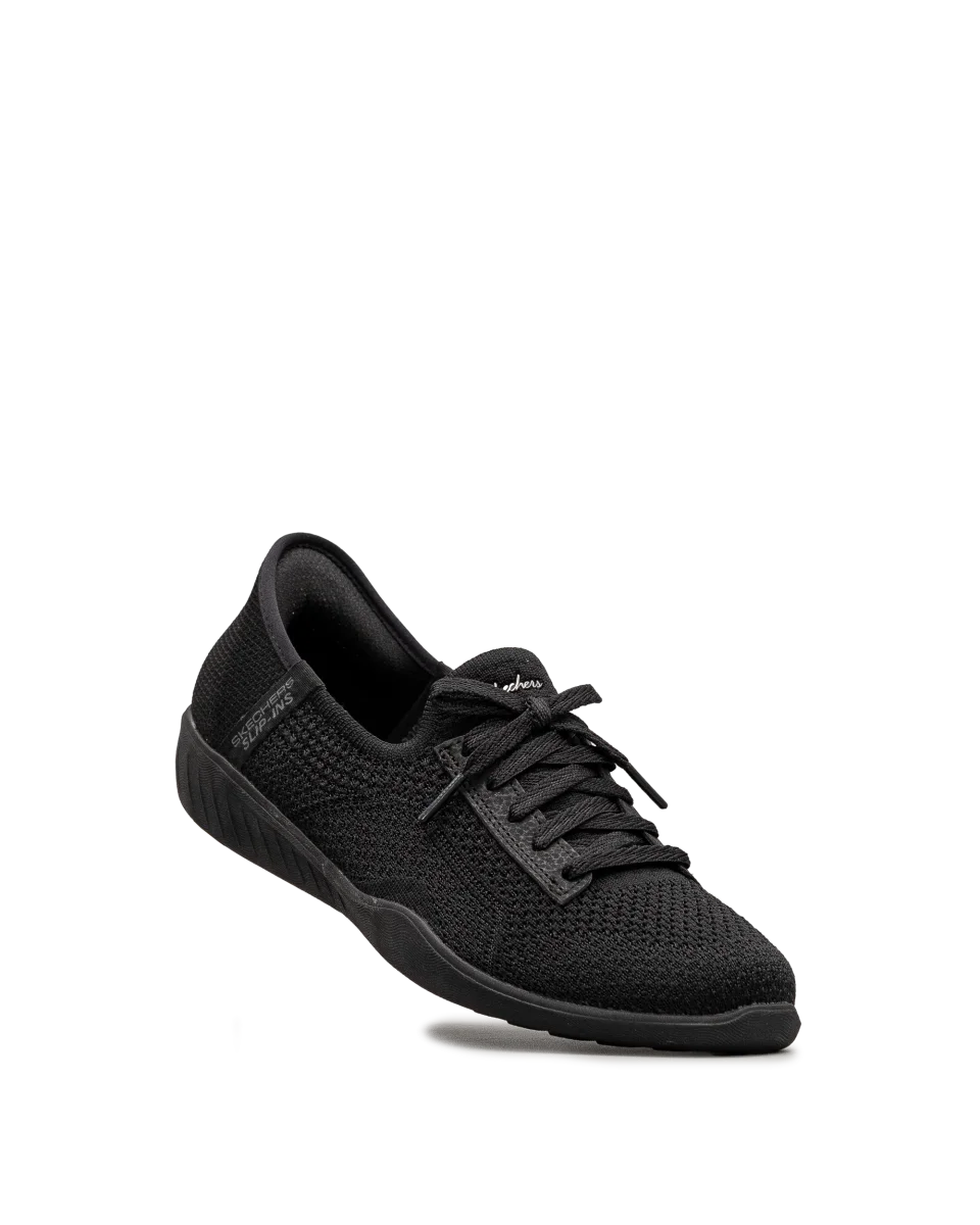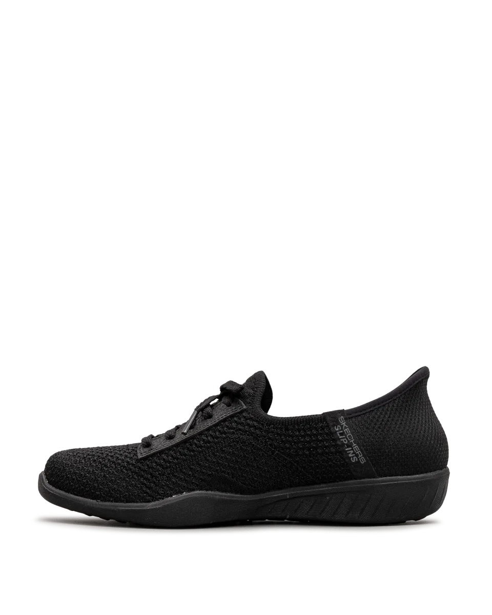 Les Skechers Our Time en noir allient élégance et fonctionnalité. Conçues avec un système Slip-Ins, elles se chaussent sans effort, offrant un ajustement parfait grâce à leur textile extensible et respirant. La semelle intérieure coussinée assure un confort durable, idéal pour vos longues journées. Légères et décontractées, ces chaussures sont parfaites pour un usage quotidien tout en maintenant un style moderne et sobre.