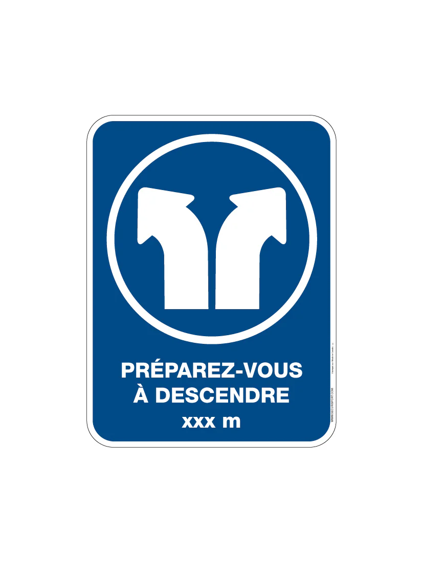 Panneau Préparez-vous à descendre xxx m