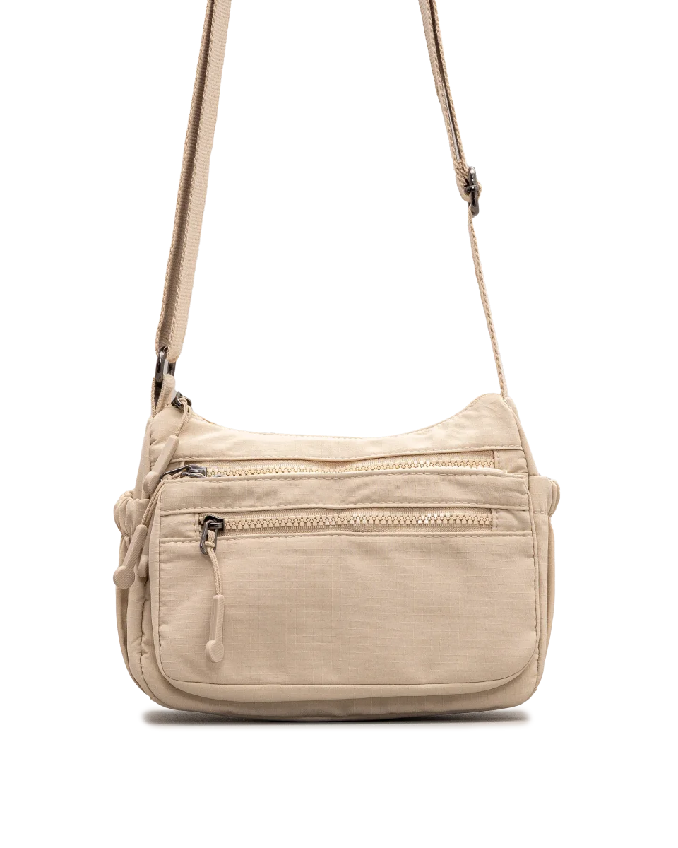 Ce sac à bandoulière beige allie légèreté et fonctionnalité dans un style décontracté. Ses nombreuses poches zippées facilitent l’organisation au quotidien. Sa sangle réglable offre un confort personnalisé en toute simplicité. Bloom&Co signe ici un modèle pratique et passe-partout, parfait pour accompagner chaque journée.