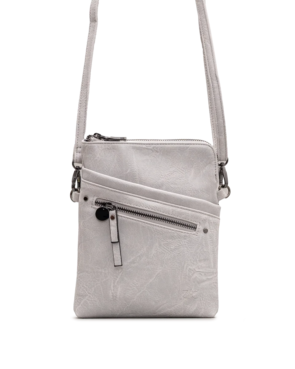 Ce sac à bandoulière gris foncé séduit par son design compact et graphique. Sa texture marbrée et ses fermetures inclinées lui donnent un style unique. Il est idéal pour transporter vos essentiels avec légèreté. La marque Zac propose ici un accessoire au caractère urbain affirmé.
