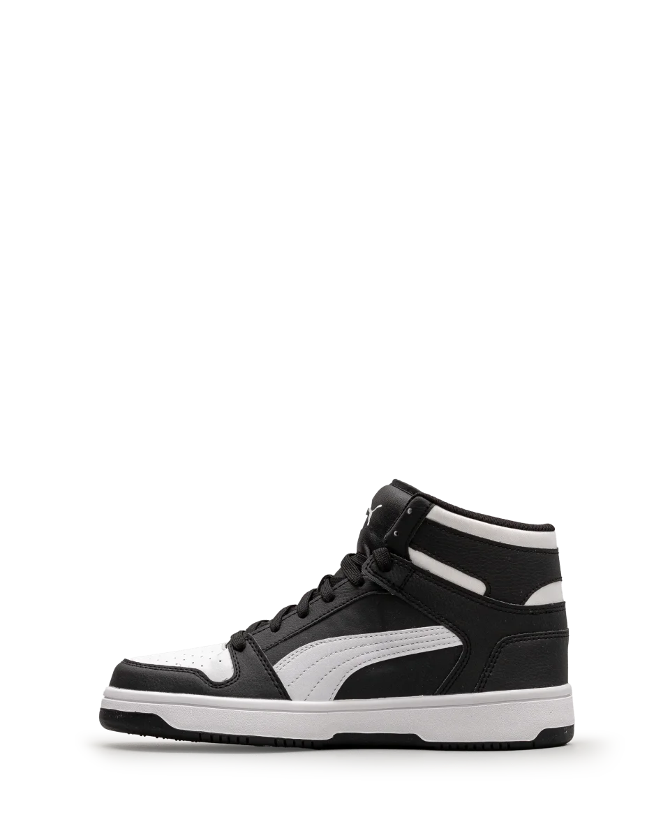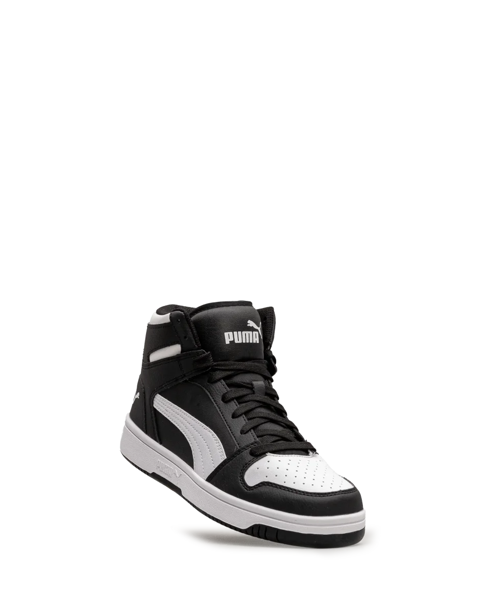Ces chaussures Puma noires et blanches s’inspirent du style basketball pour un look urbain affirmé. Leur tige montante soutient bien la cheville lors des activités. Faciles à ajuster avec leur laçage classique, elles procurent une stabilité durable. Un modèle tendance pour jeunes passionnés de style et de mouvement.