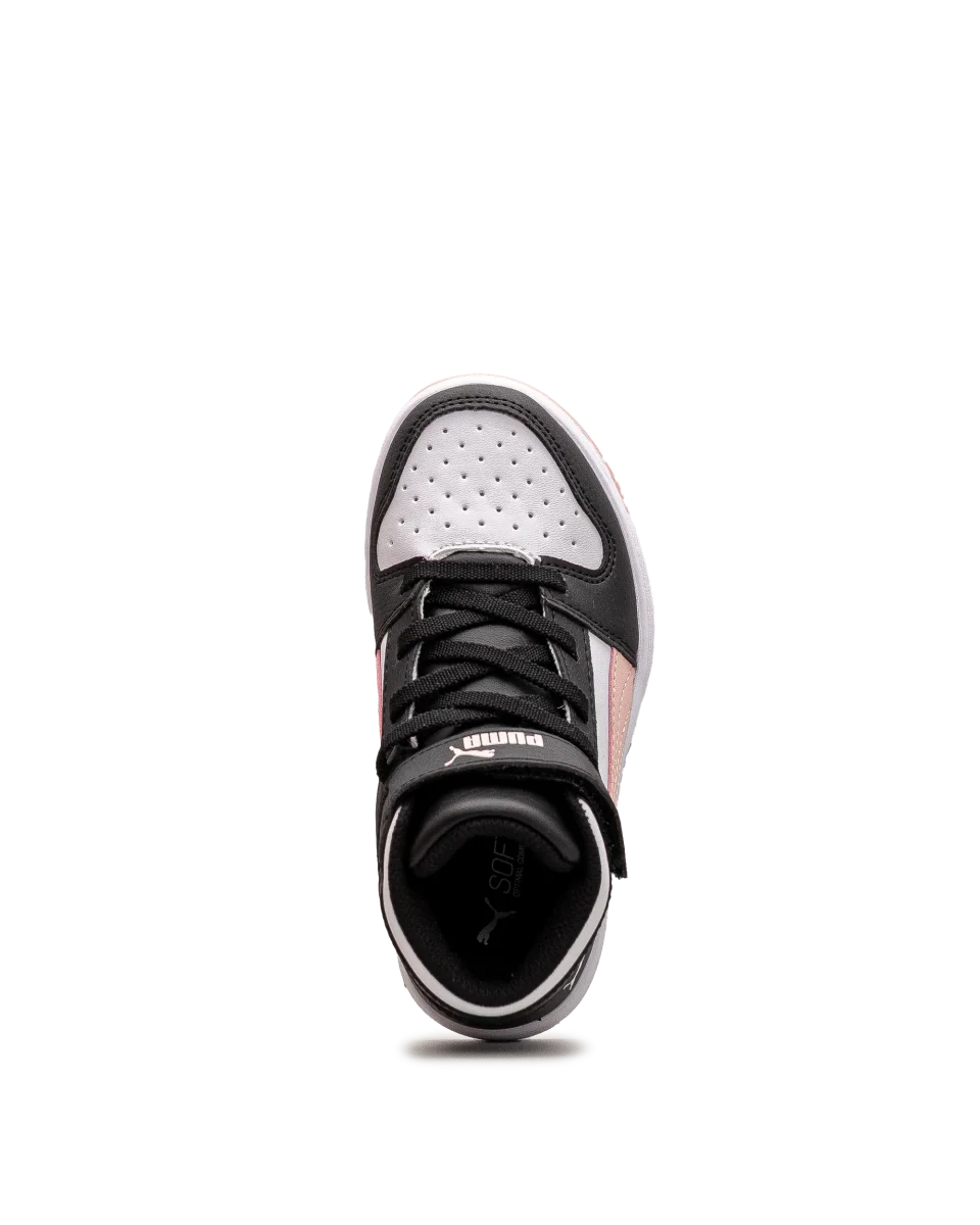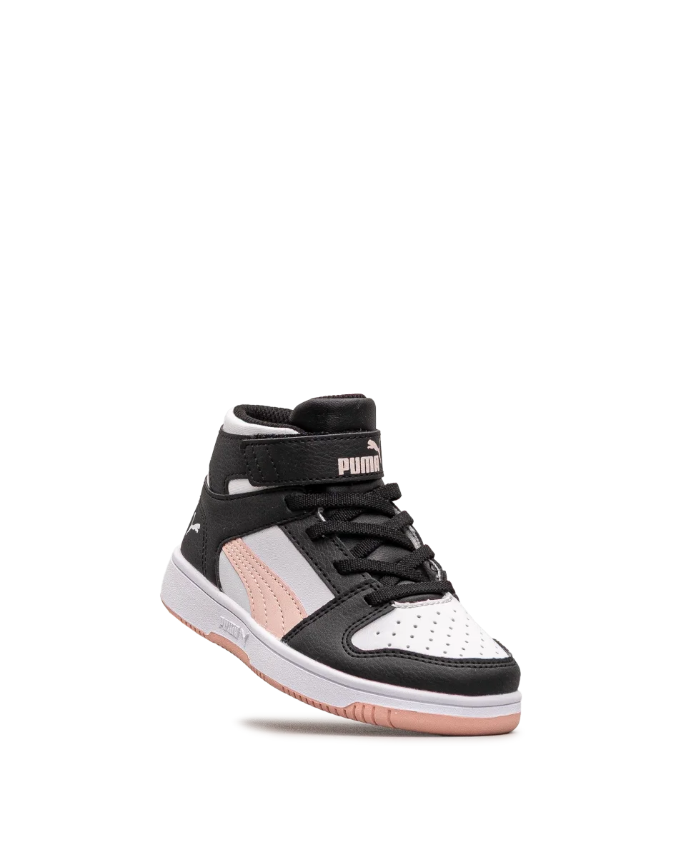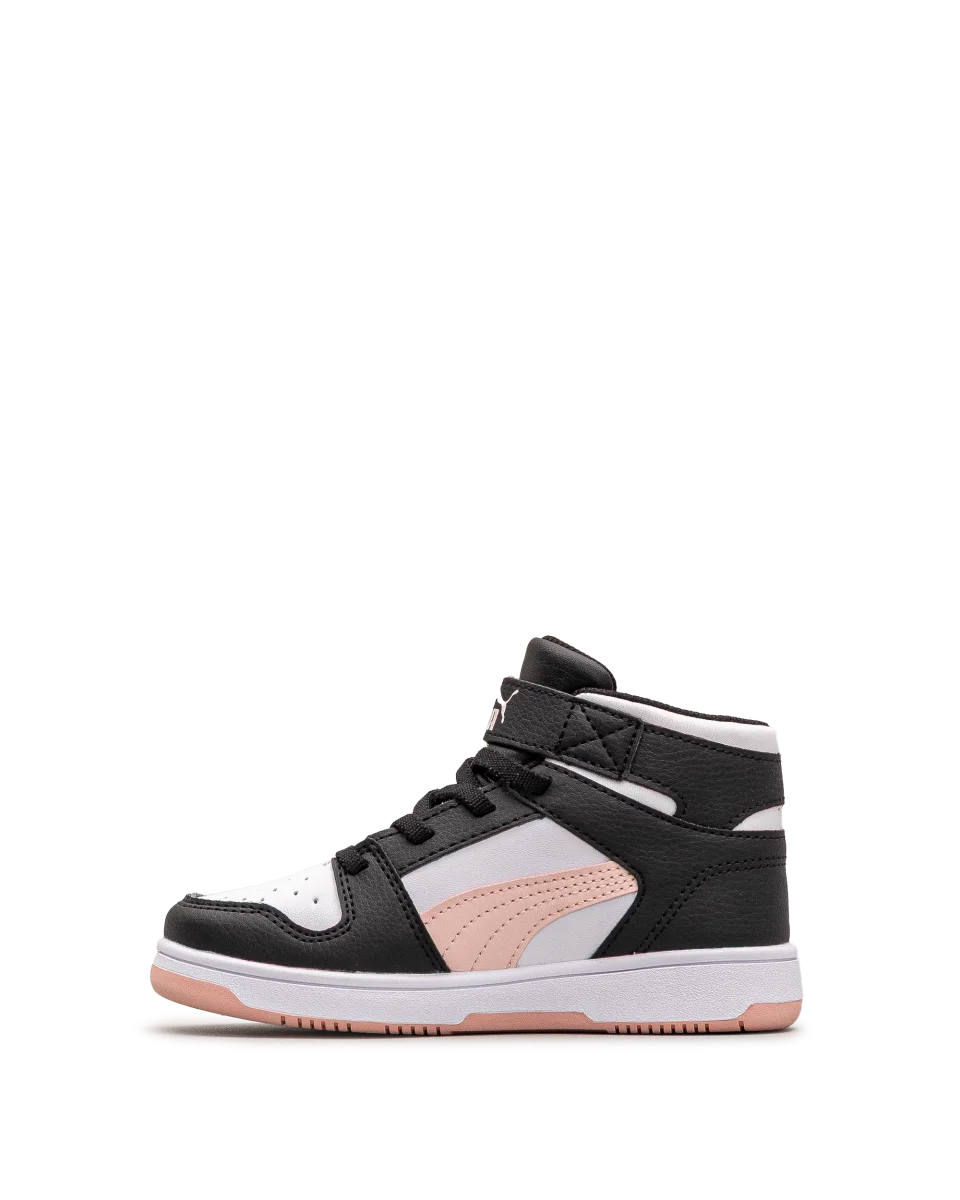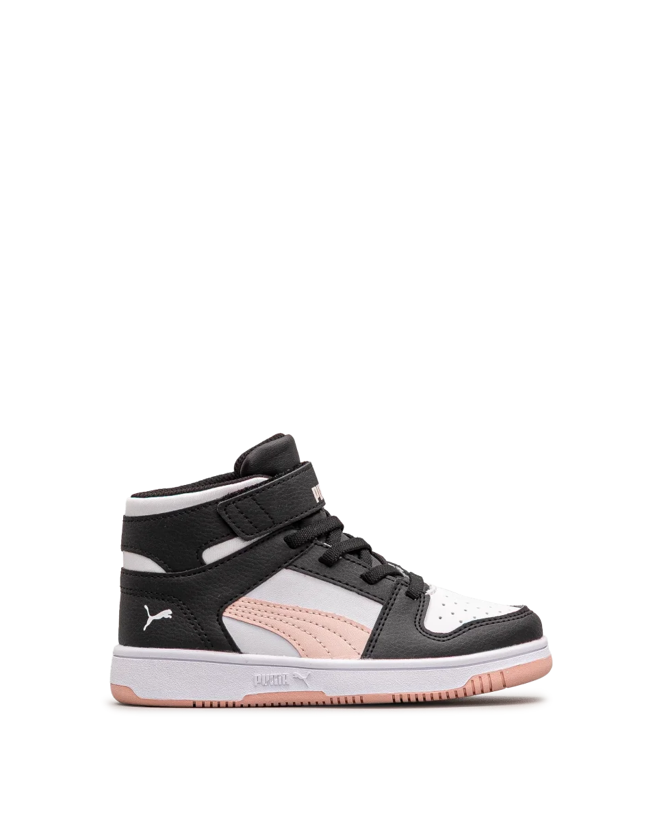 Ces chaussures montantes Puma offrent un look urbain tendance pour les jeunes. Leur combinaison de noir, blanc et rose pâle crée un style affirmé et polyvalent. La fermeture à velcro facilite l’enfilage rapide. Un excellent choix pour allier mode et confort au quotidien.