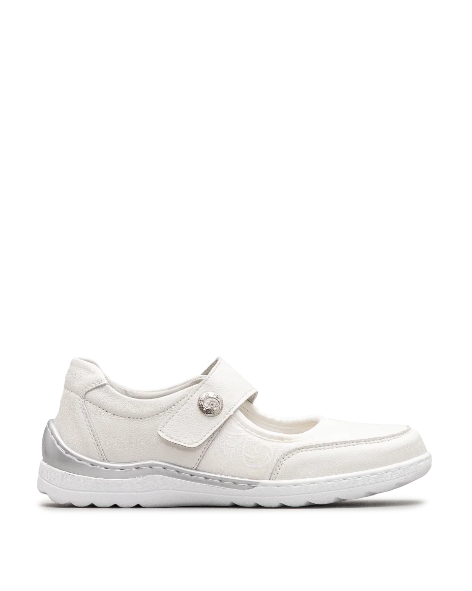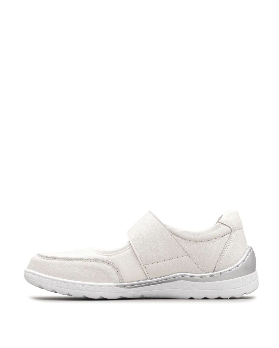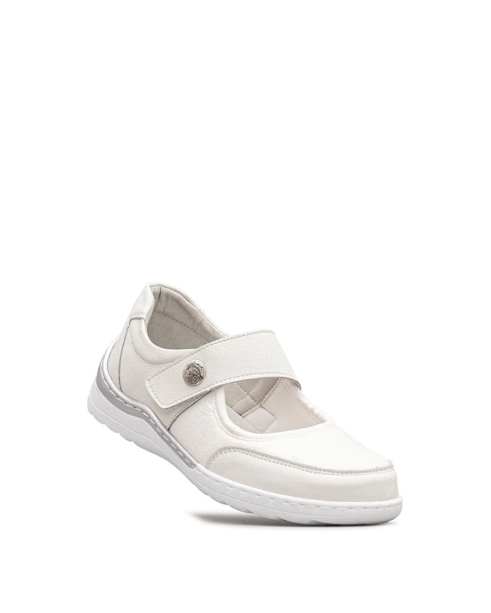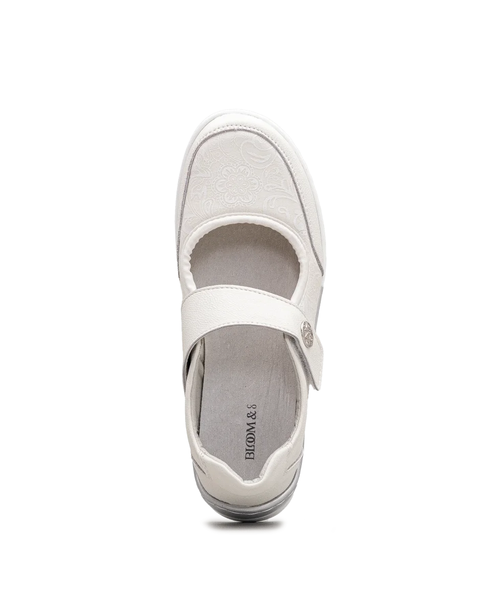Ces chaussures blanches se distinguent par leur confort et leur sobriété raffinée. Leur sangle ajustable permet un enfilage rapide et une tenue stable. Le bouton décoratif ajoute une note élégante à leur allure épurée. Une création Bloom&Co qui allie style pratique et douceur au quotidien.