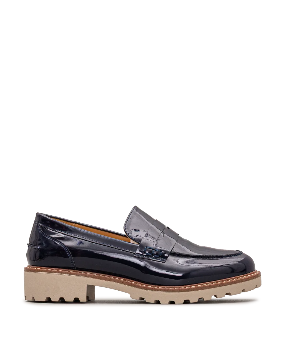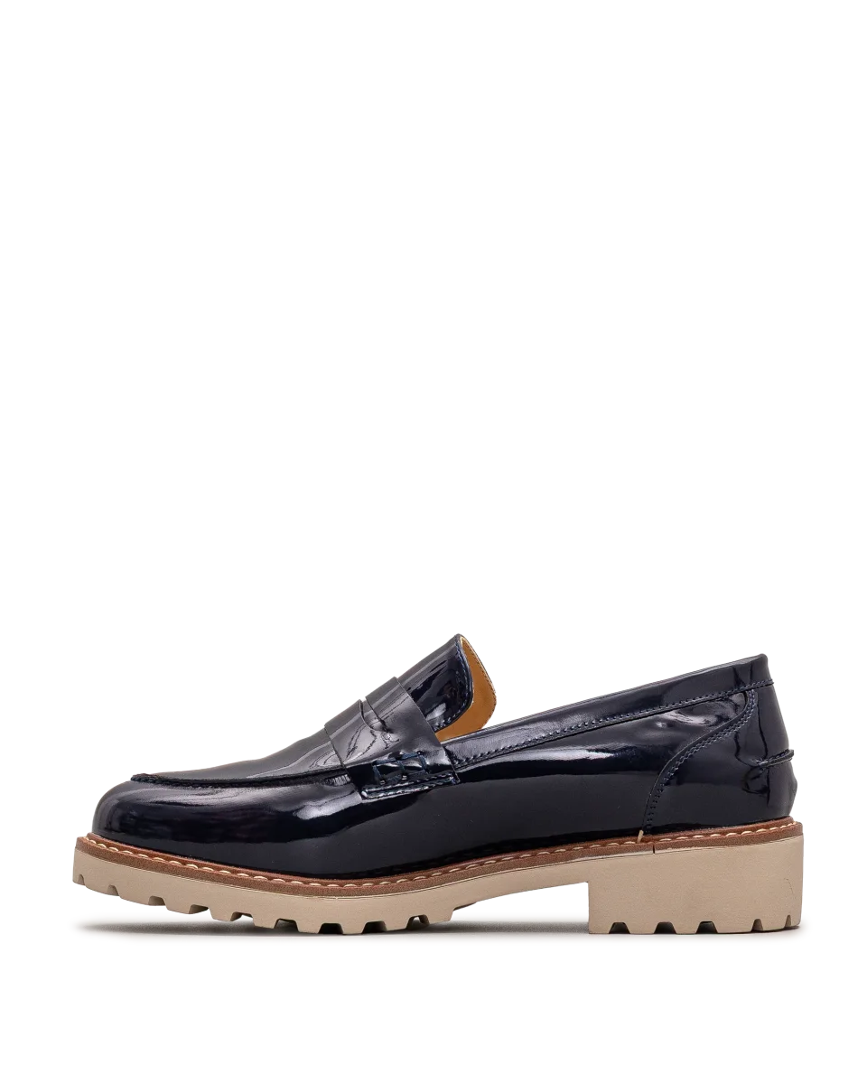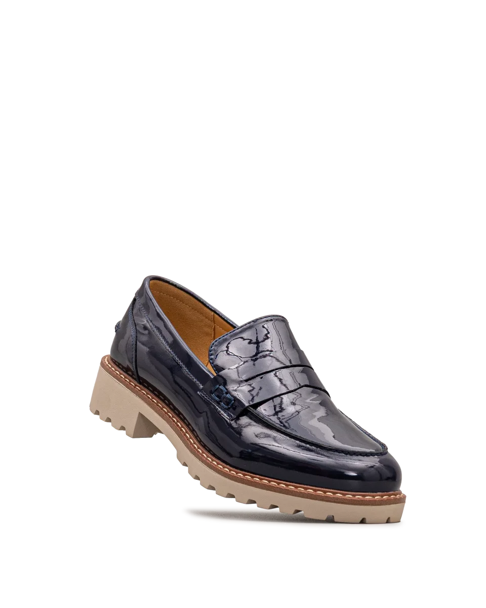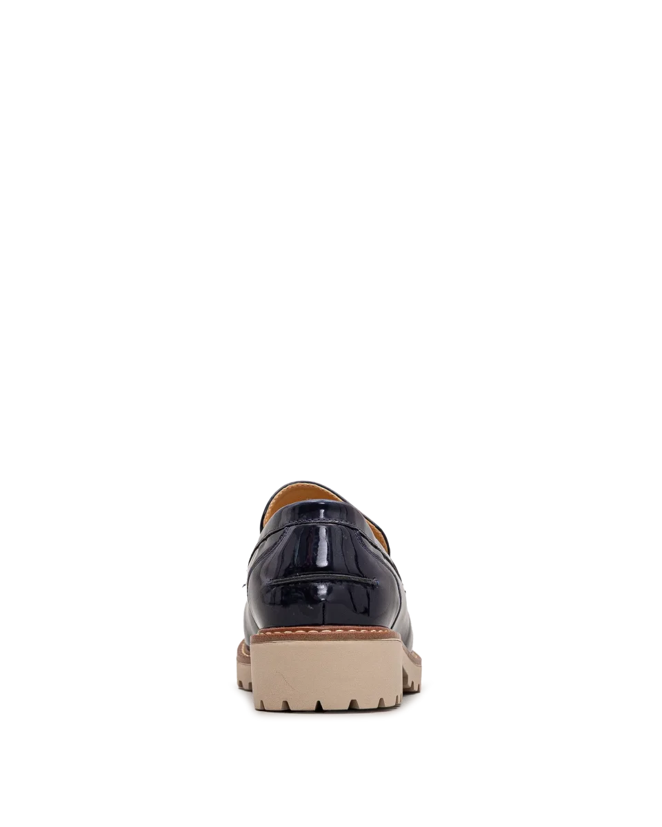 Ces chaussures Bloom & Co marine séduisent par leur fini lustré et raffiné. Leur semelle contrastante crantée assure stabilité et allure contemporaine. Faciles à porter, ils rehaussent instantanément vos tenues. Un modèle chic et polyvalent pour un style sans compromis.