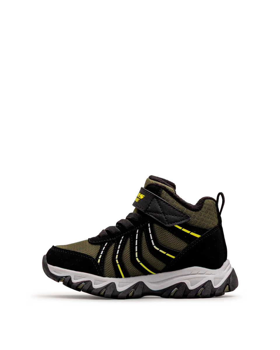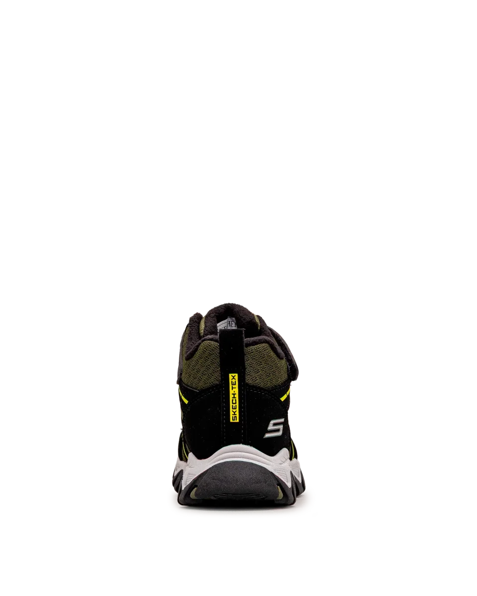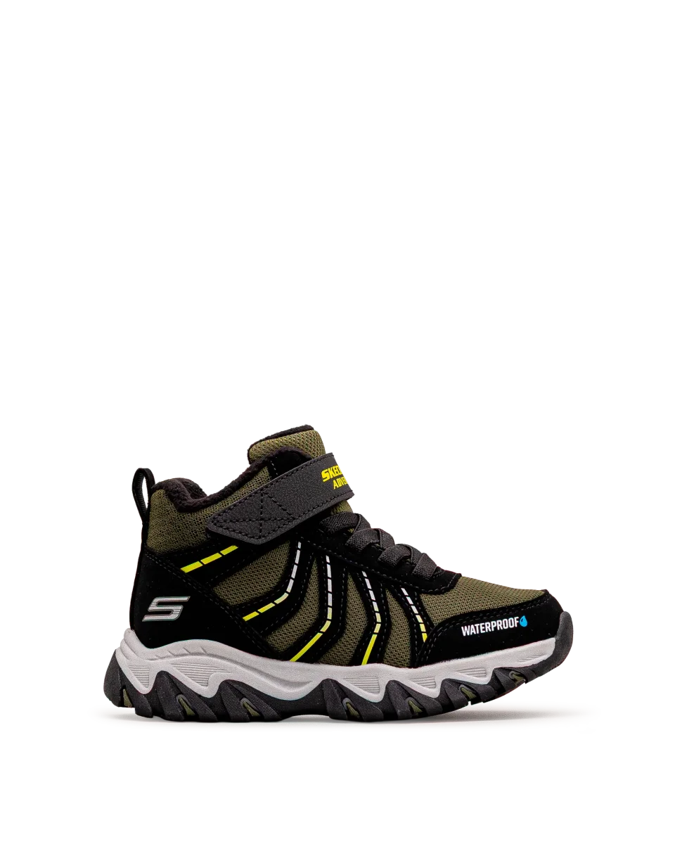 Ces bottillons Skechers noirs et gris sont parfaits pour les journées actives. Leur conception imperméable protège les pieds de l’humidité. Faciles à enfiler avec leur fermeture à velcro, ils assurent aussi une bonne stabilité. Un modèle idéal pour les jeunes aventuriers.