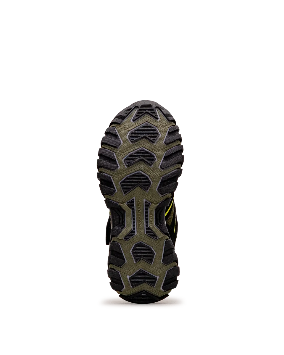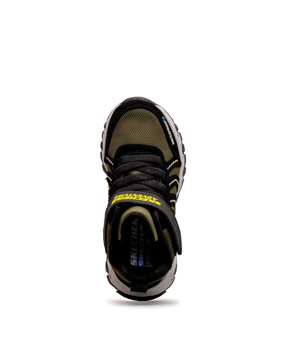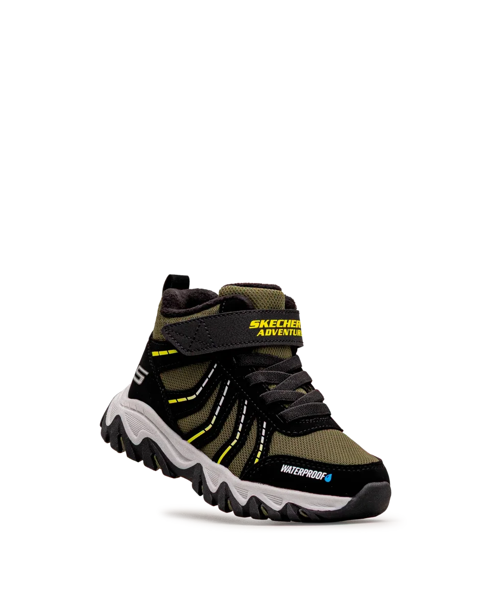 Ces bottillons Skechers noirs et gris sont parfaits pour les journées actives. Leur conception imperméable protège les pieds de l’humidité. Faciles à enfiler avec leur fermeture à velcro, ils assurent aussi une bonne stabilité. Un modèle idéal pour les jeunes aventuriers.
