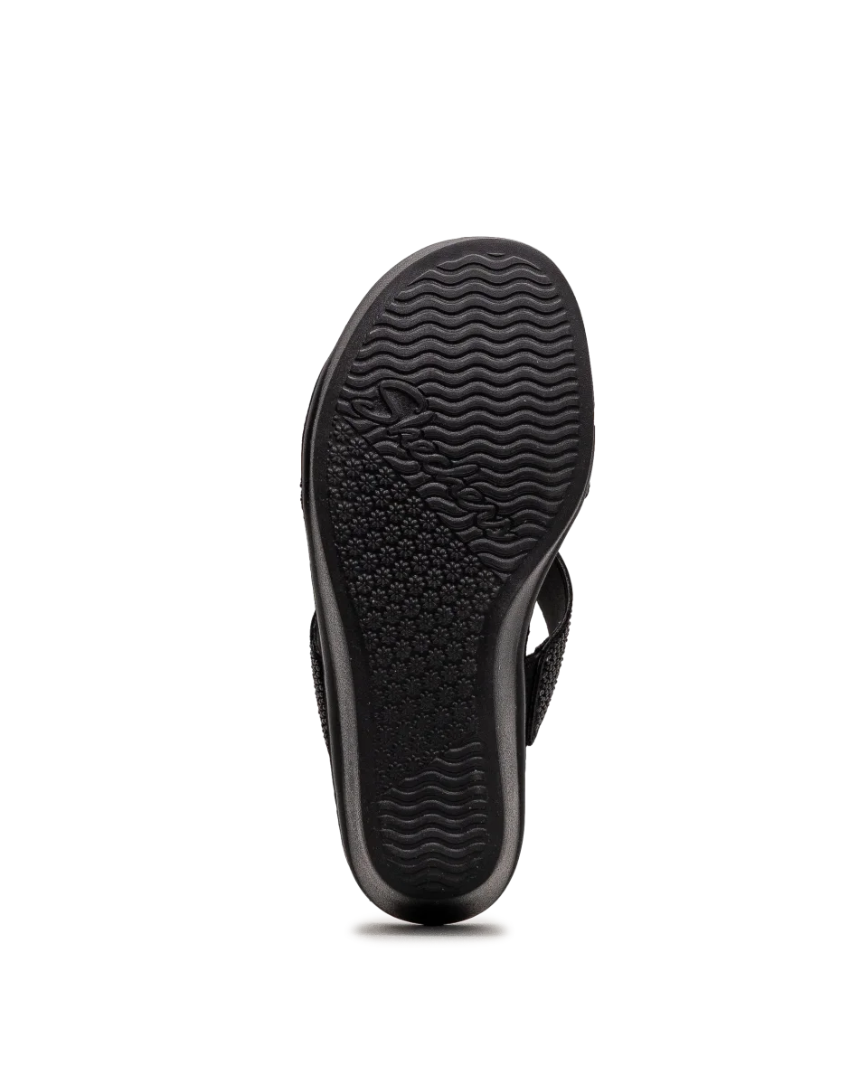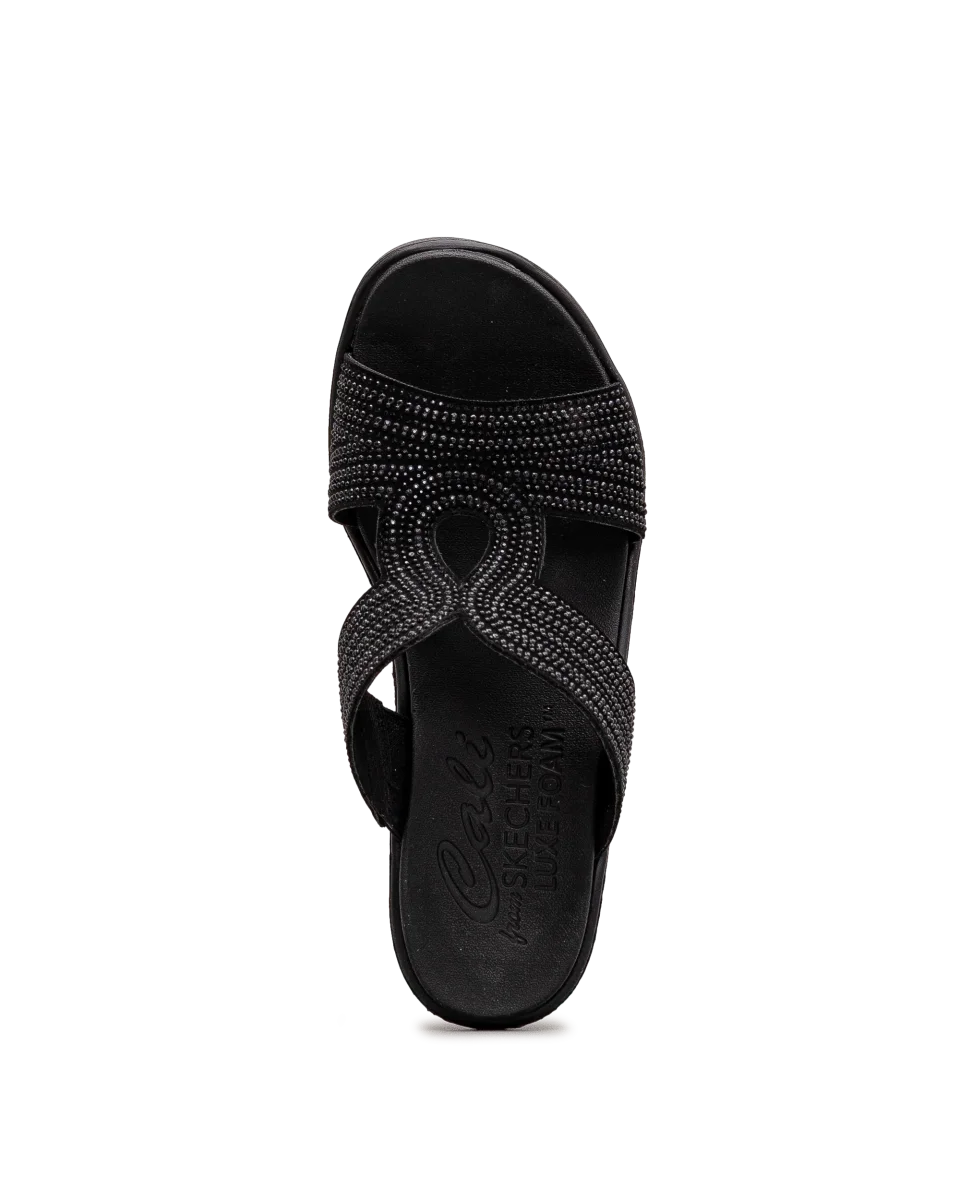 Ces sandales noires pour femme marient allure sophistiquée et confort au quotidien. Leur talon compensé procure une démarche assurée et féminine. Enfilage facile grâce à leur design ouvert et souple. Un modèle Skechers idéal pour un été chic en tout confort.