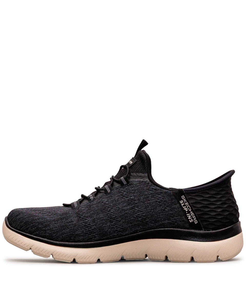 Ces chaussures Skechers noires larges sont idéales pour les pieds ayant besoin de plus d’espace. Leur ouverture Slip-Ins assure un enfilage sans les mains. La semelle flexible soutient vos déplacements avec confort. Une solution pensée pour les besoins spécifiques de largeur.