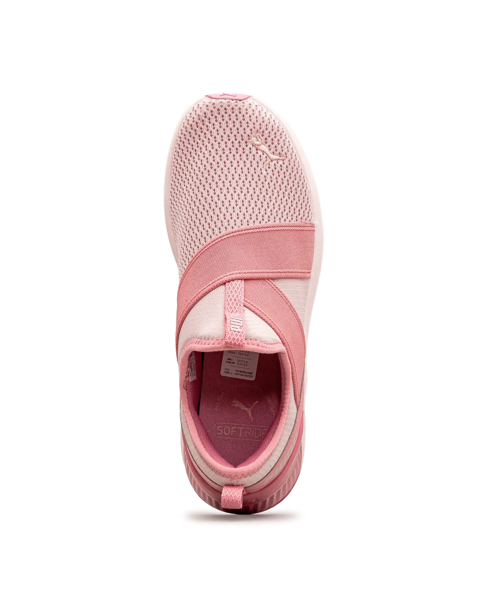 Ces chaussures Puma rose pâle au design sans lacets sont idéales pour un usage quotidien. Leur bande élastique croisée assure un ajustement ferme et rapide. Fabriquées avec des matériaux respirants, elles gardent les pieds au frais toute la journée. Un choix pratique pour les femmes en mouvement constant.