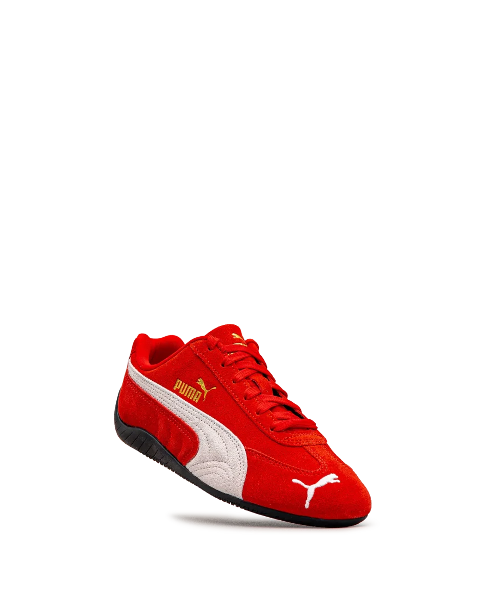 Ces chaussures Puma rouges sont conçues pour accompagner les enfants actifs au quotidien. Leur semelle noire adhérente assure une excellente tenue. Le contraste entre le rouge vif et le blanc apporte une touche énergique. Une option idéale pour allier style et performance.