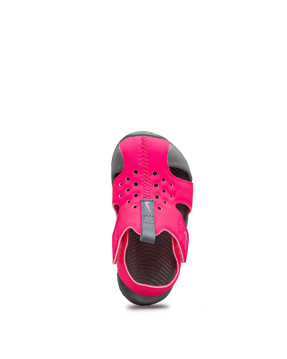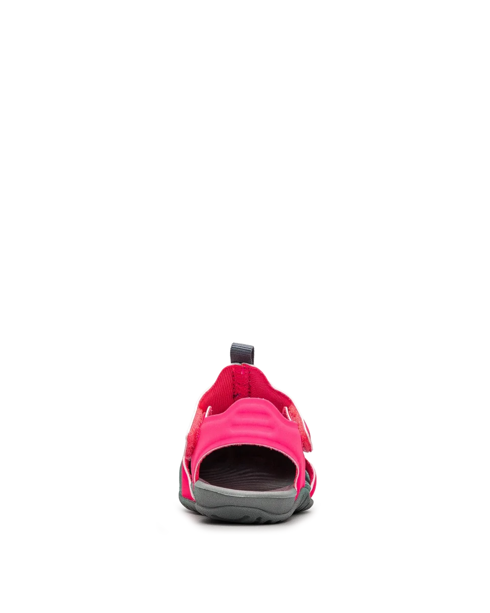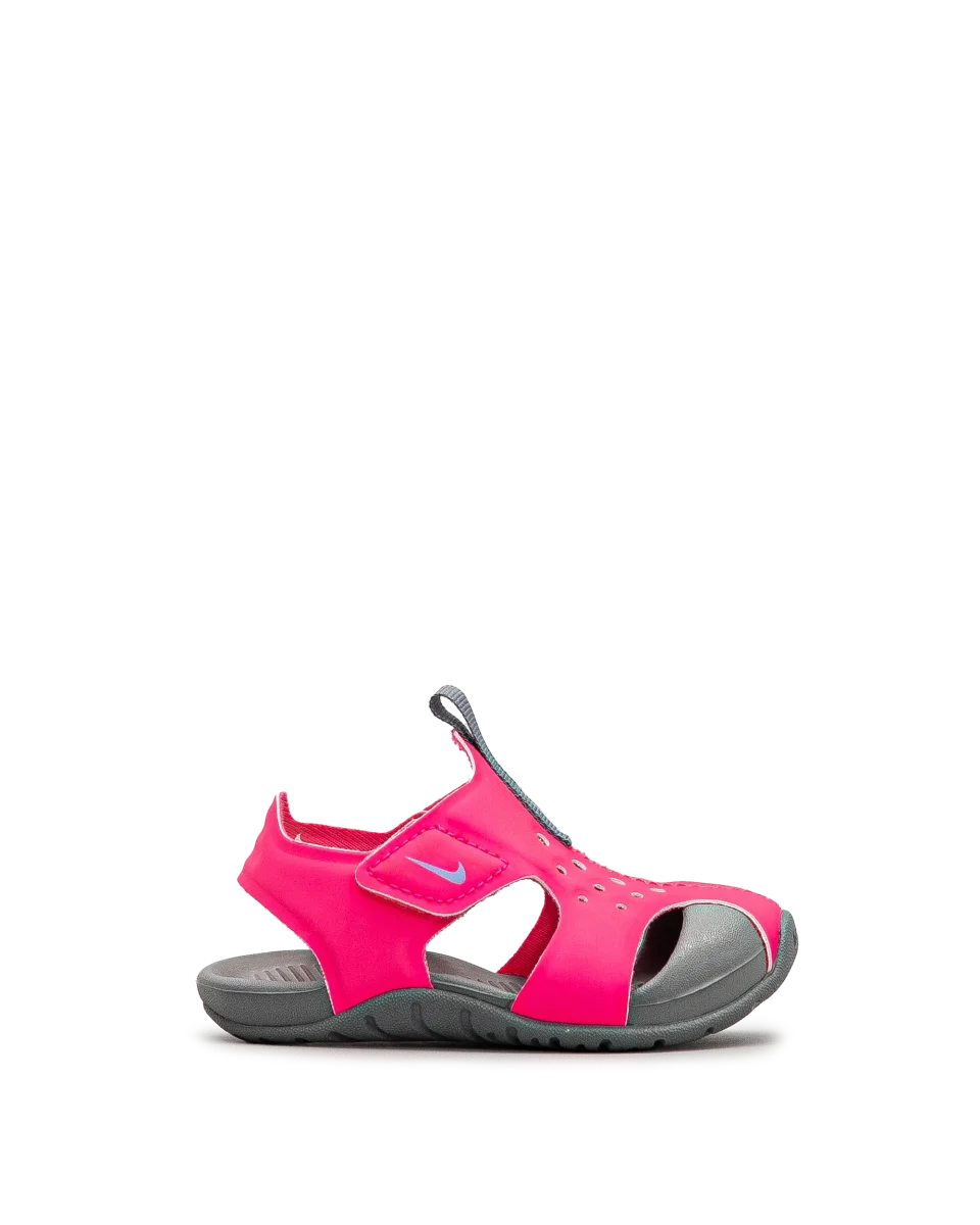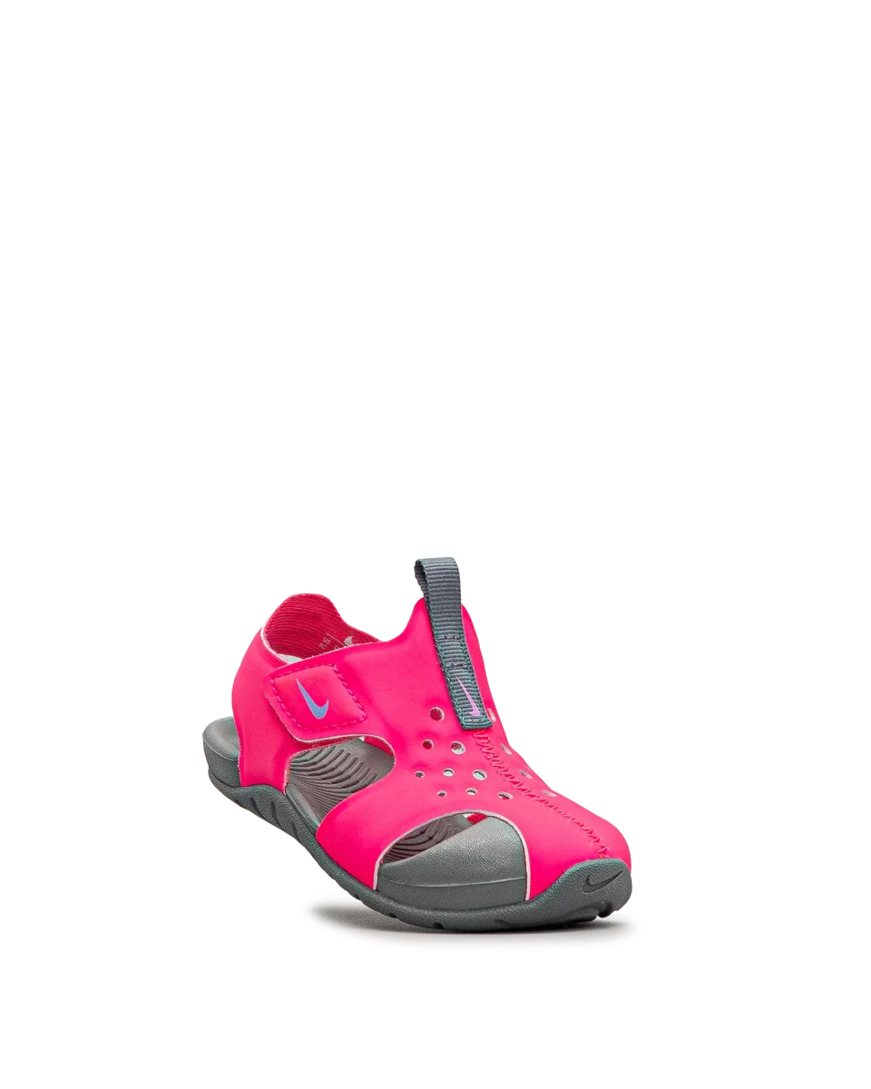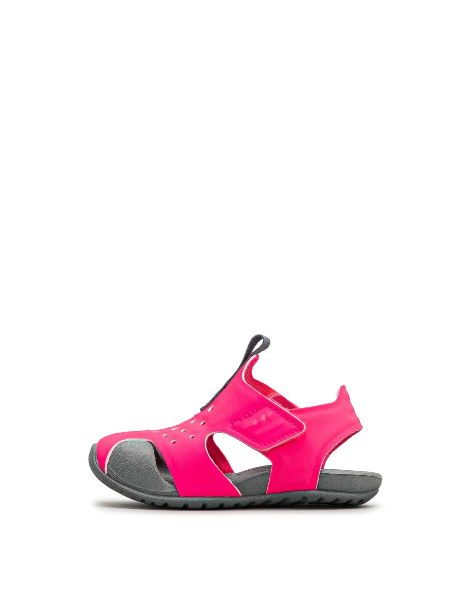 Ces sandales Nike offrent une protection légère et pratique pour les tout-petits. Leur structure fermée protège les orteils tout en assurant une bonne aération. Faciles à enfiler grâce à la bande autoagrippante, elles tiennent bien en place. Un choix futé pour les activités estivales.