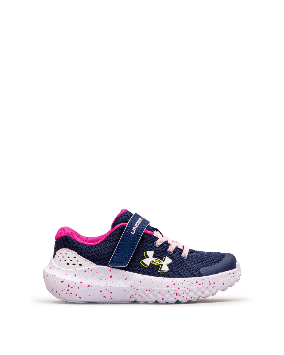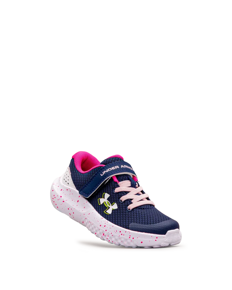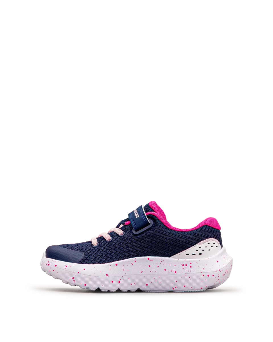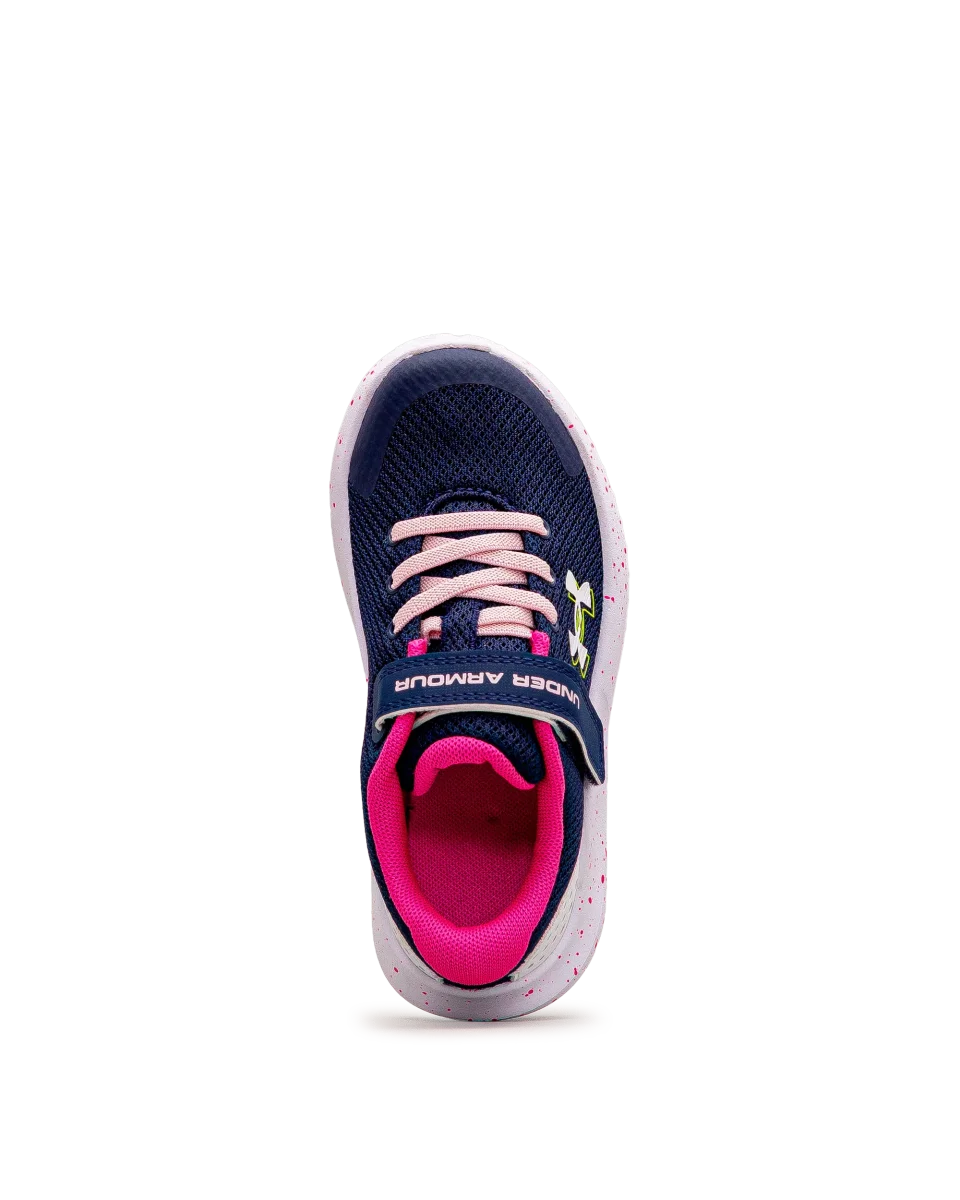 Ces chaussures marine et rose séduisent par leur semelle tachetée et leur allure dynamique. Leur conception légère favorise un mouvement fluide et naturel. Faciles à enfiler grâce à la bande auto-agrippante, elles soutiennent les activités quotidiennes. Une combinaison de style et de performance signée Under Armour.