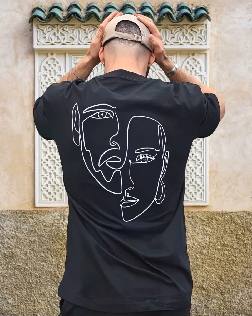 Notre collection exclusive propose une gamme variée de T-shirts unisexes 100 % coton, soigneusement conçus et ornés d’œuvres minimalistes et abstraites, finement brodées à l’avant ou à l’arrière.